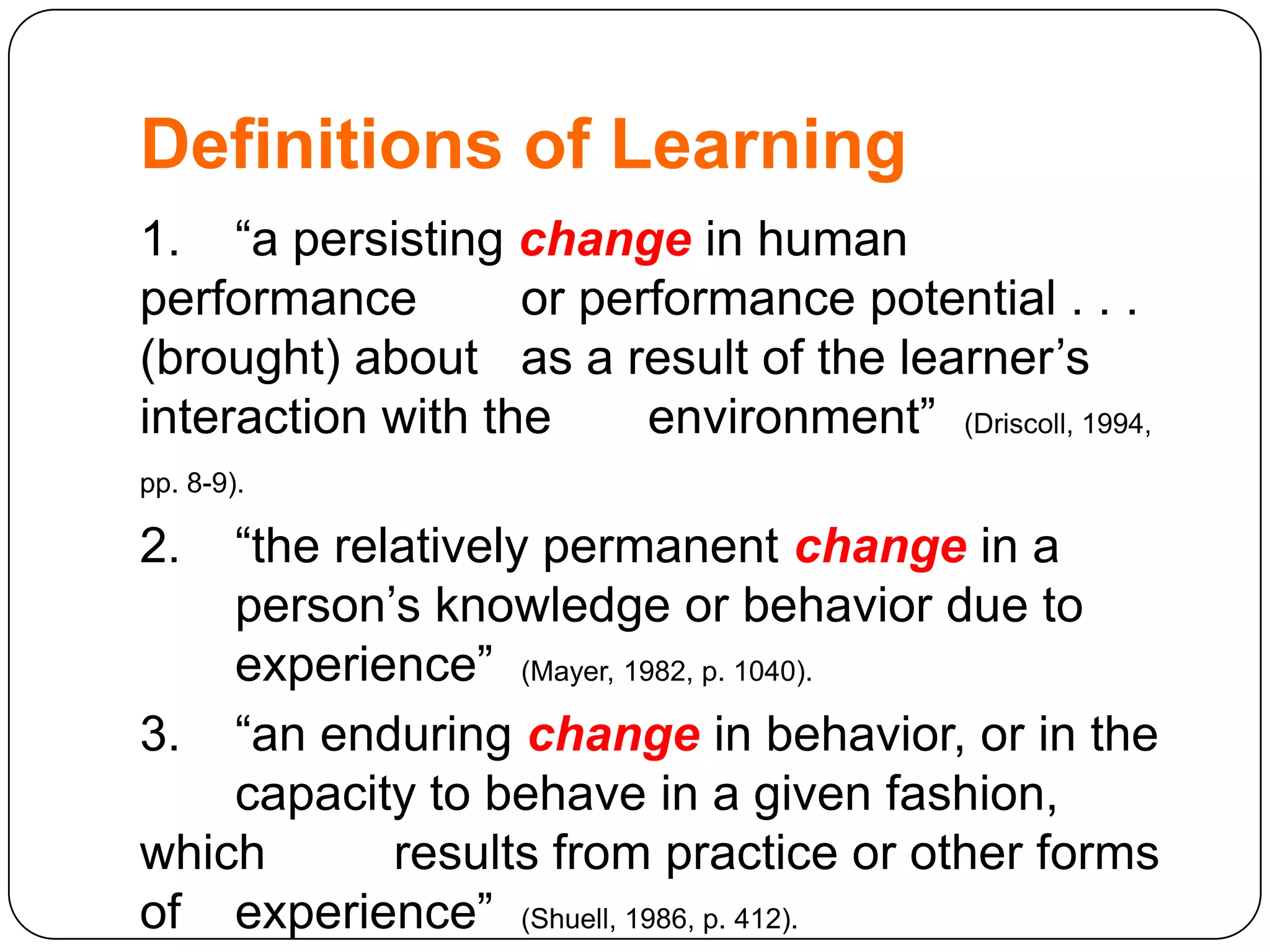 The document summarizes several key learning theories including classical conditioning, operant conditioning, and observational learning. Classical conditioning, proposed by Ivan Pavlov, explains how organisms learn associations between stimuli and responses. Operant conditioning, developed by B.F. Skinner, describes how behaviors are strengthened or weakened through reinforcement and punishment. Observational learning, identified by Albert Bandura, refers to learning through observing and imitating others. These theories provide frameworks for understanding how human behavior is acquired and changed through interaction with the environment.