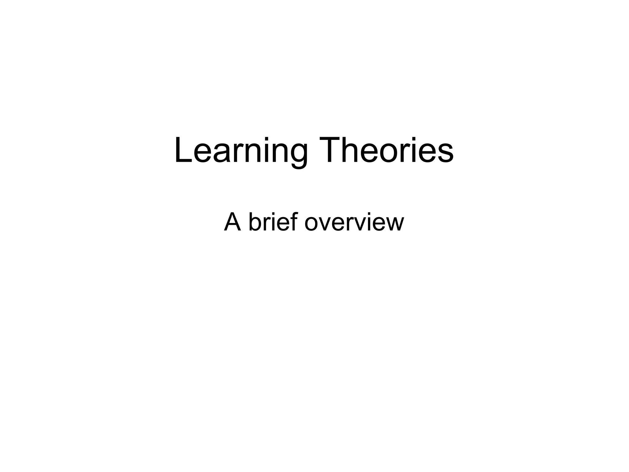 The document provides an overview of different learning theories including behaviorism, cognitivism, constructivism, and connectivism. Behaviorism focuses on observable behaviors and reinforcement. Cognitivism examines mental structures and how individuals construct knowledge. Constructivism emphasizes social interactions and collaboration. Connectivism involves networking to connect to needed resources and sharing content.