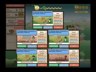 The document explores the definition and dynamics of games, highlighting how they promote learning through structured conflict and rules. It contrasts traditional games like Candy Land, which offer minimal interactivity, with more complex games like Aisle that require player engagement for outcomes. Additionally, it discusses the learning processes involved in gaming, emphasizing how games can teach various skills through their mechanics and player interactions.
