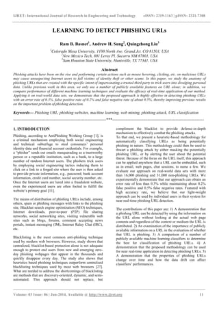 The paper studies phishing URLs, particularly their anatomy and how they imitate trusted third parties, leading to identity theft. It proposes a heuristic-based methodology for detecting phishing URLs, achieving a remarkable accuracy with a 0.3% error rate and low false positive and negative rates by using publicly available features on URLs alone. The study emphasizes the method's potential for real-time application and the need for dynamic approaches to complement existing blacklist techniques in combating phishing attacks.