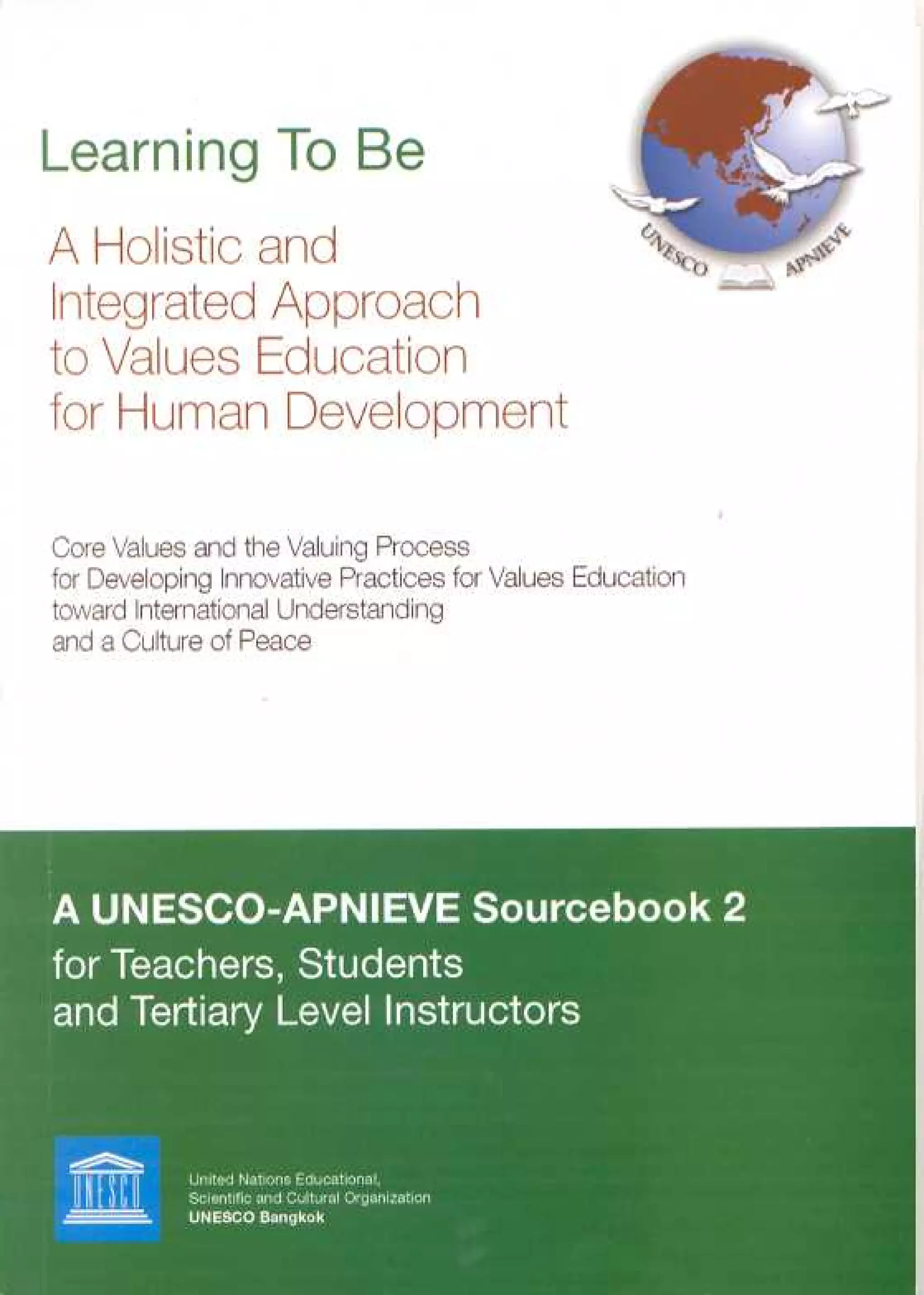 This document is a foreword to a UNESCO publication titled "Learning to Be: A holistic and integrated approach to values education for human development." It discusses the importance of values education, or "learning to be," which focuses on developing students as whole persons. It emphasizes teaching universal human values to promote peace, counter risks of violence and terrorism, and ensure well-rounded human development. The foreword praises the publication for providing practical guidance to help teachers implement values education, including sample teaching modules and recommendations for training educators. It argues this values-centered approach is urgently needed to address shortcomings in traditional education.