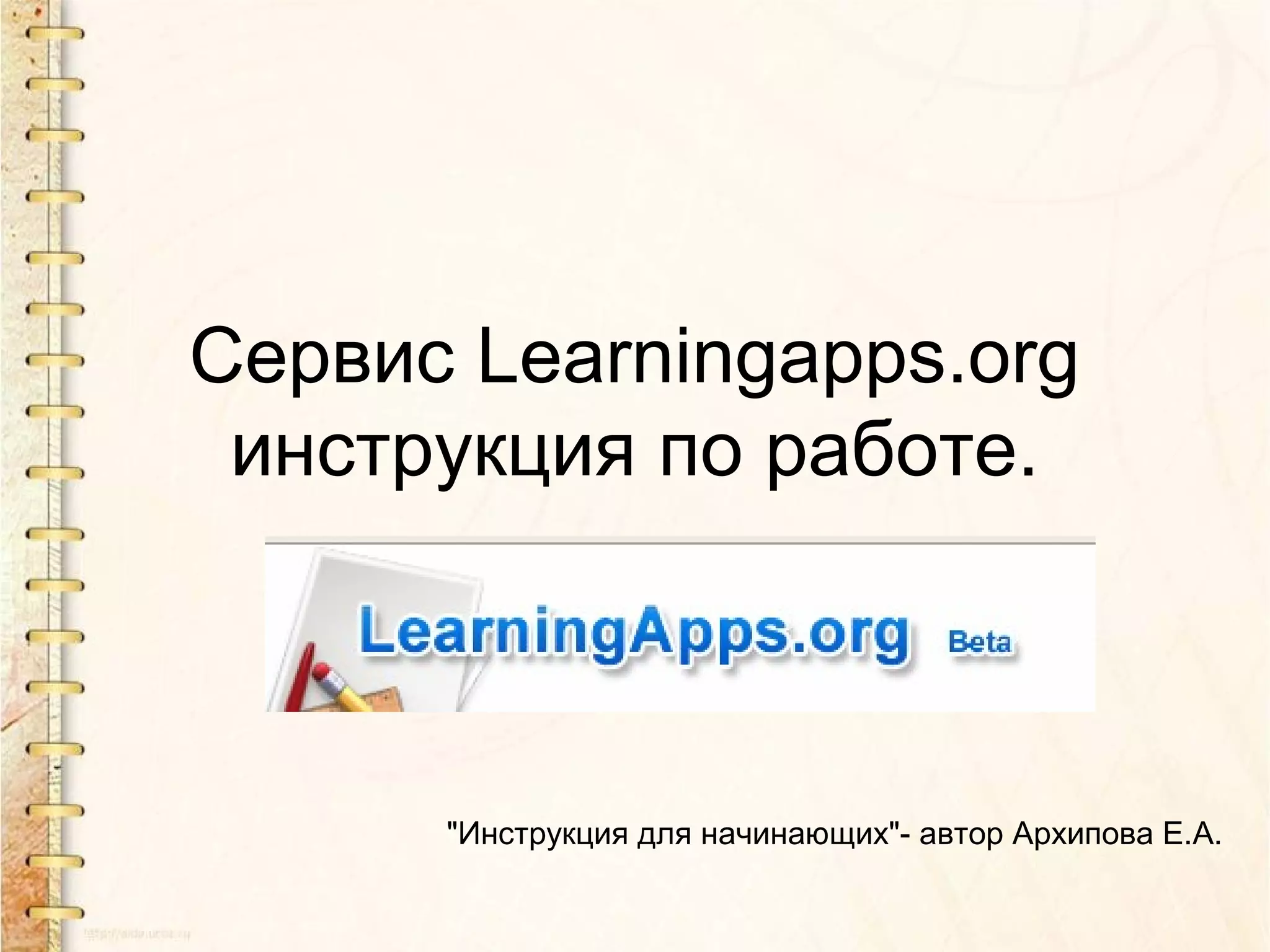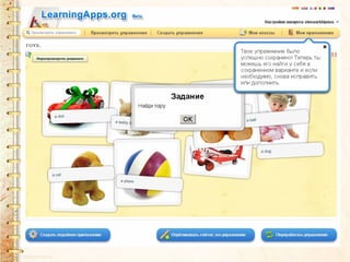 Документ представляет инструкцию по использованию сервиса learningapps.org для создания интерактивных учебных пособий. Он описывает поэтапный процесс регистрации, создания аккаунта и создания различных типов упражнений, таких как пазлы, викторины и кроссворды. Сервис позволяет учителям и ученикам разнообразить процесс обучения, делая его увлекательным и доступным.