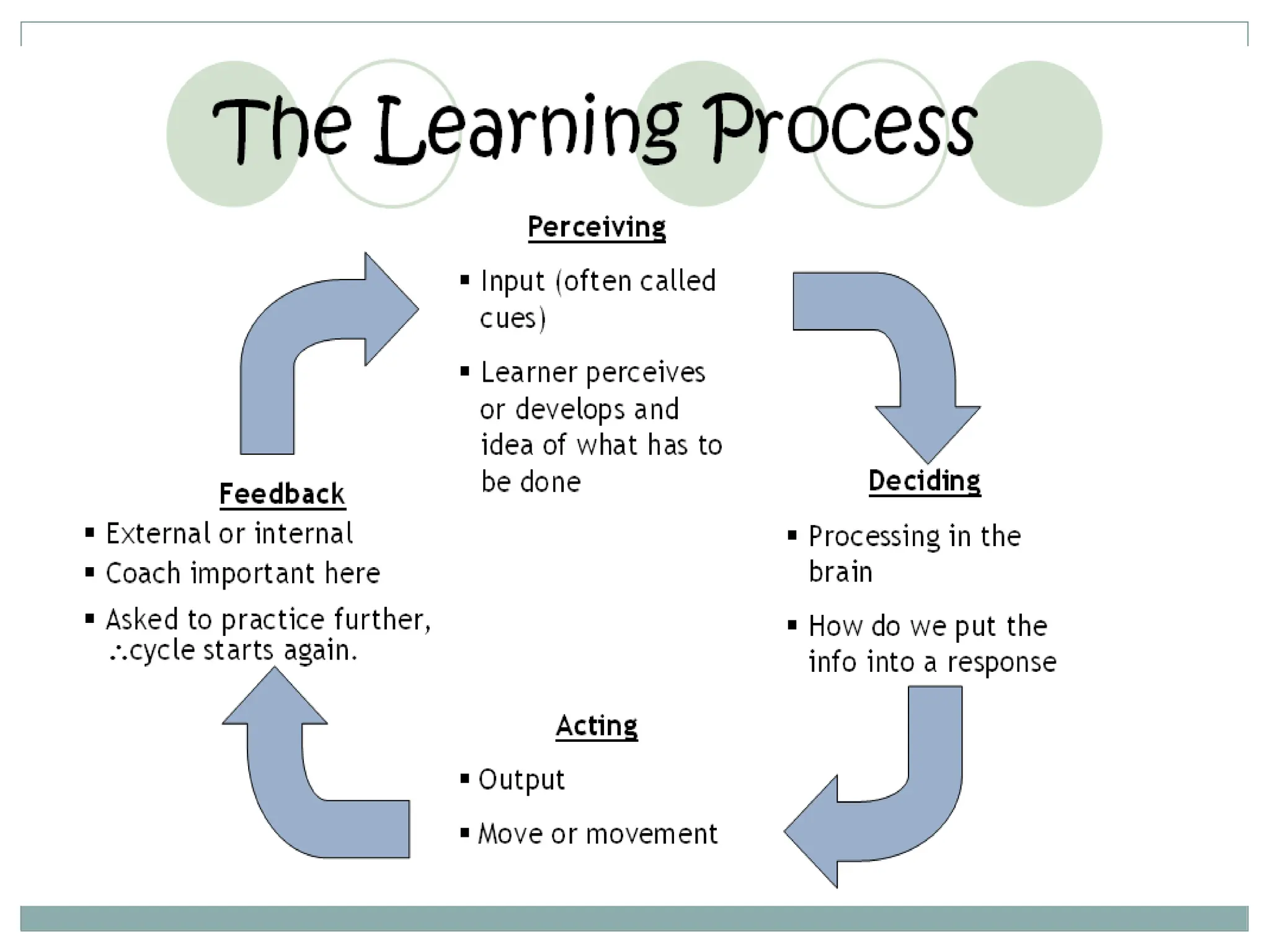 The document provides an overview of the learning process, defining it as a change in behavior resulting from experience and practice, and highlights that learning occurs across various stages in life and among all living beings. It outlines principles and theories of learning, including behavioral, cognitive, and social constructivism, emphasizing methods such as participation and relevance in enhancing learning. Various domains and theories of learning are discussed, including multiple intelligences and brain-based learning, along with practical classroom strategies to support effective learning.