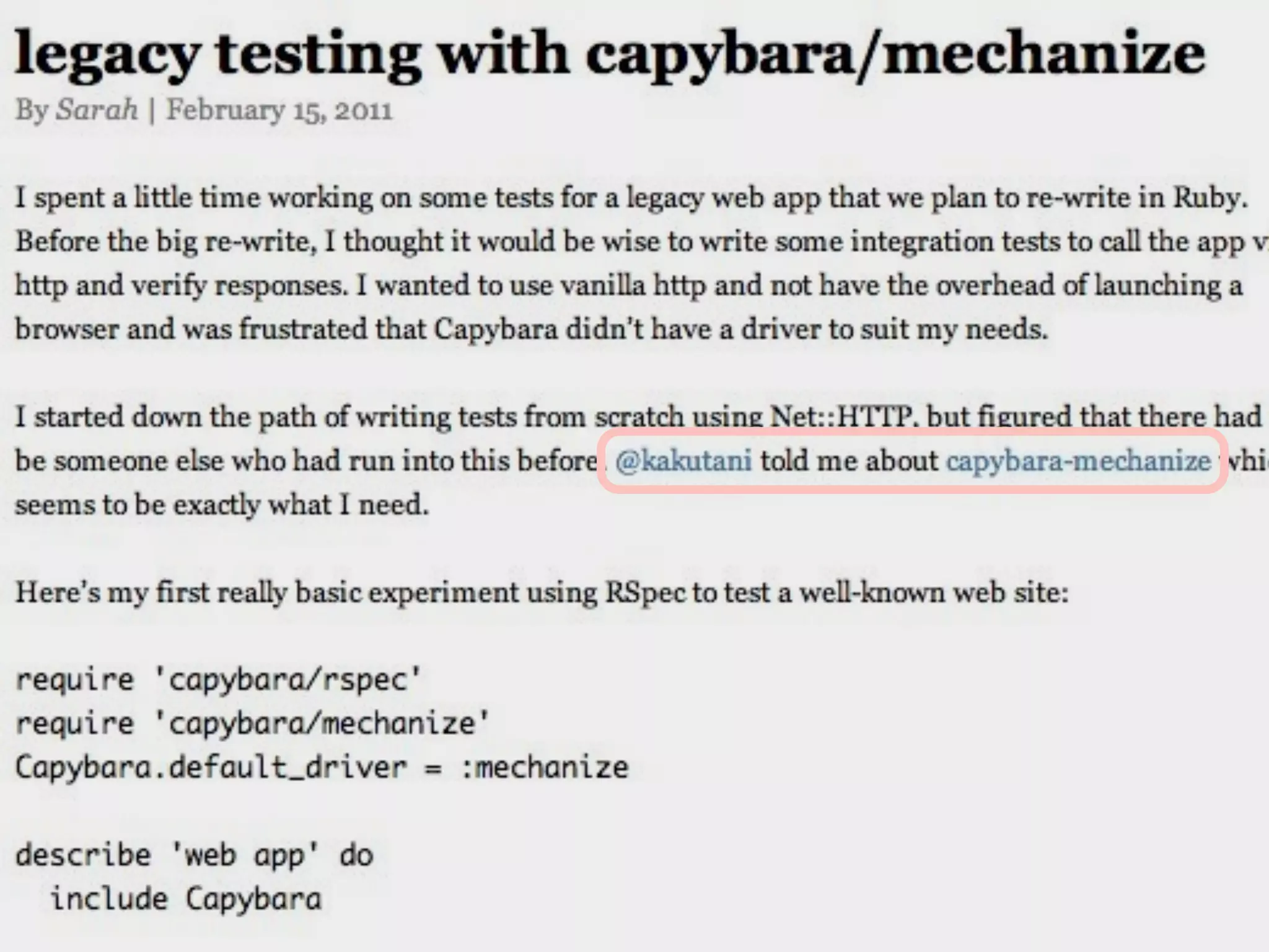 Leave end-to-end testing to Capybara. Capybara is a web testing tool that simulates user interactions with a website. It allows automating browser interactions for scenarios and features using domain-specific languages like Cucumber. Capybara supports using different drivers like Selenium for JavaScript interactions and HtmlUnit for non-JavaScript sites. Specifying the driver and JavaScript support in tests allows running tests across different environments.