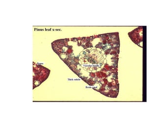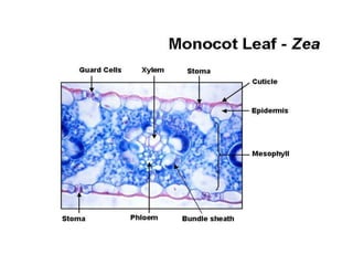 Leaves are lateral outgrowths of stems that are flattened and expanded. They have several key parts including a petiole, lamina or blade, and sometimes stipules. Leaves come in many shapes, margins, venation patterns, and can be simple or compound. The internal anatomy of leaves includes an upper and lower epidermis, mesophyll layer, and vascular bundles. Leaves also show modifications for functions like protection, support, storage, and reproduction.