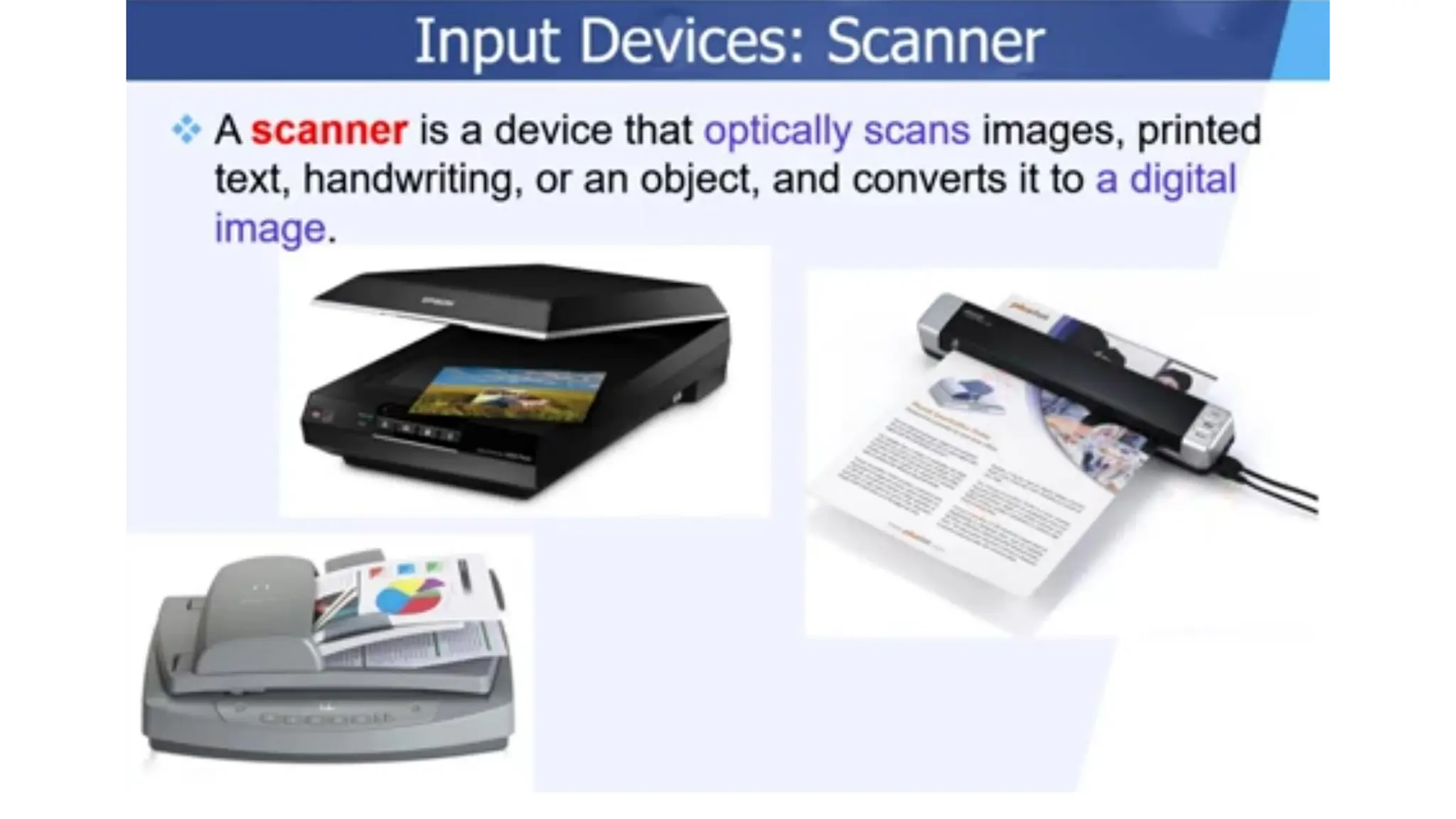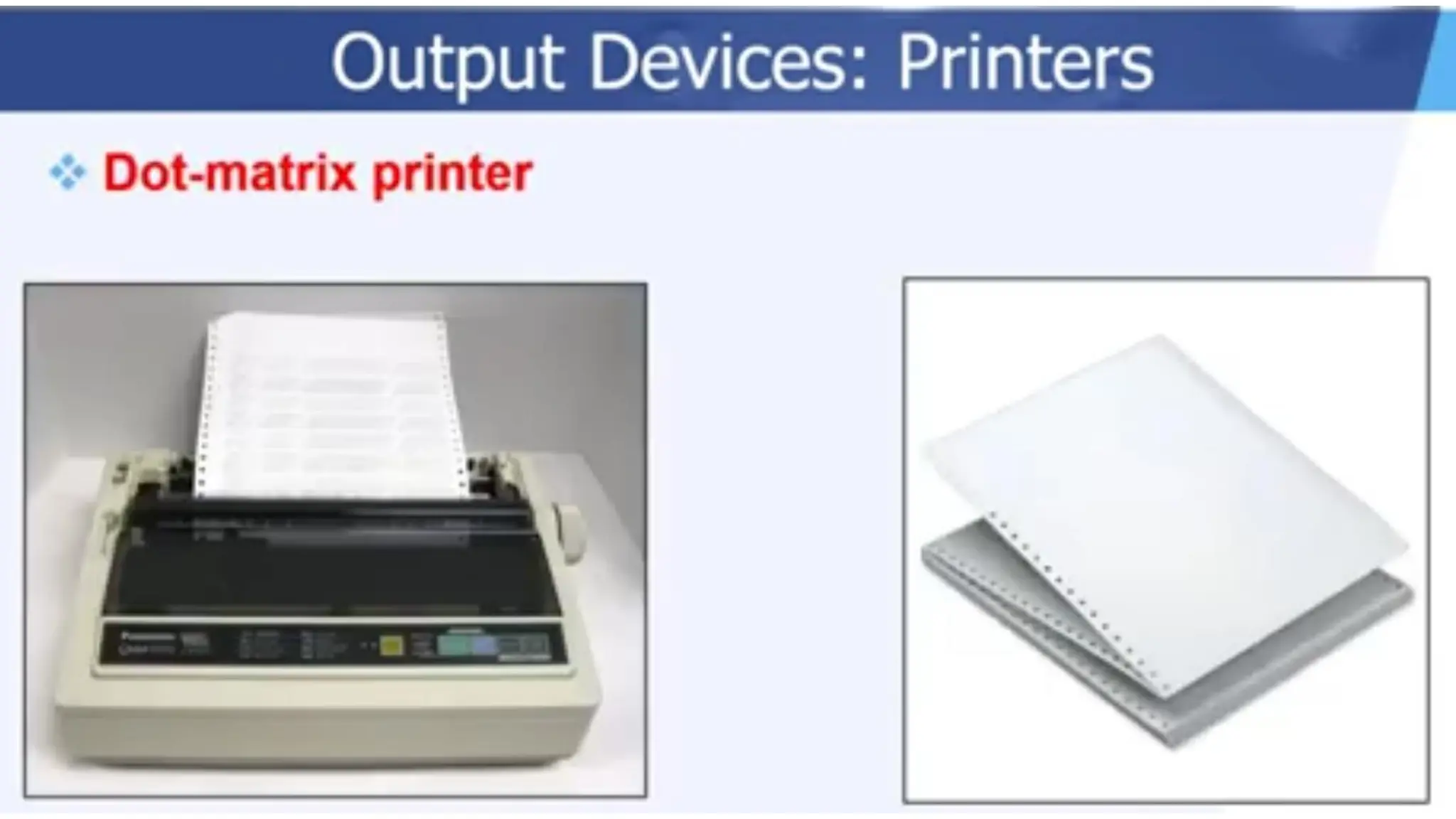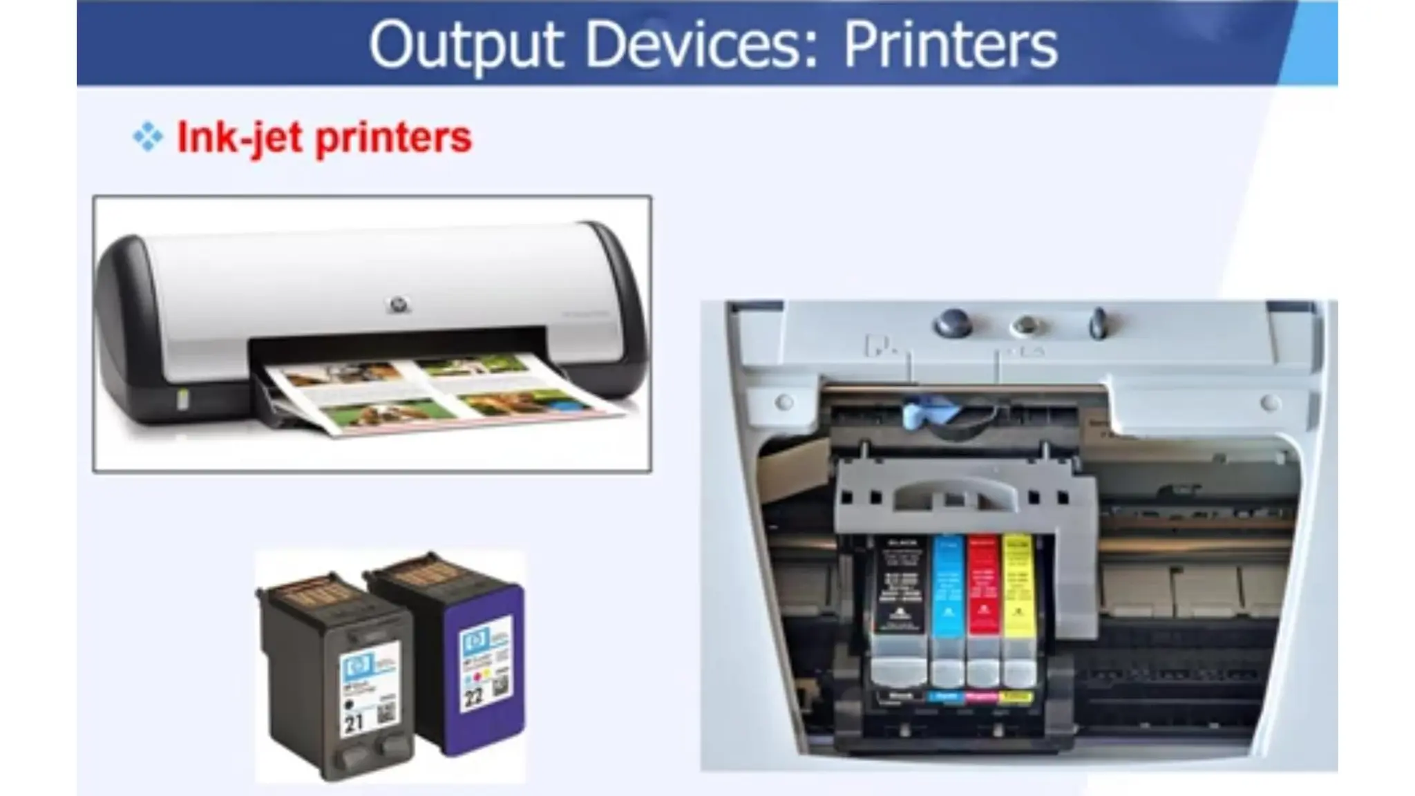 The document outlines the structure and content of the CS 101 course at the Modern Academy for Computer Science & Management Technology, focusing on input and output devices. It covers various input devices like keyboards, pointing devices, scanners, and digital cameras, along with their functionalities. Additionally, it discusses output devices, particularly printers, emphasizing the distinctions between different types and their operational characteristics.