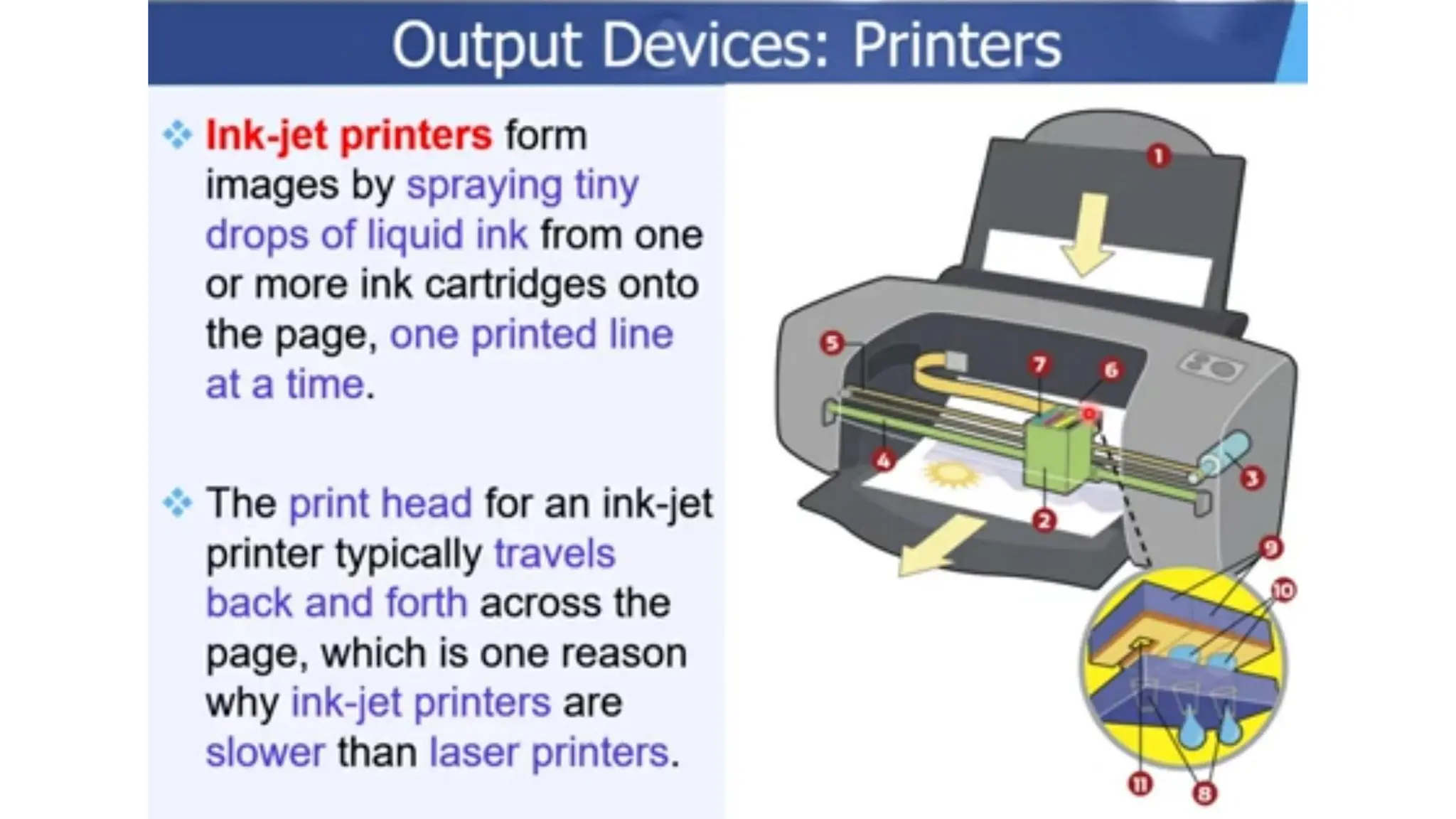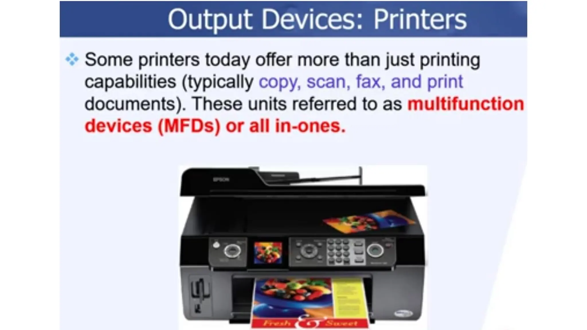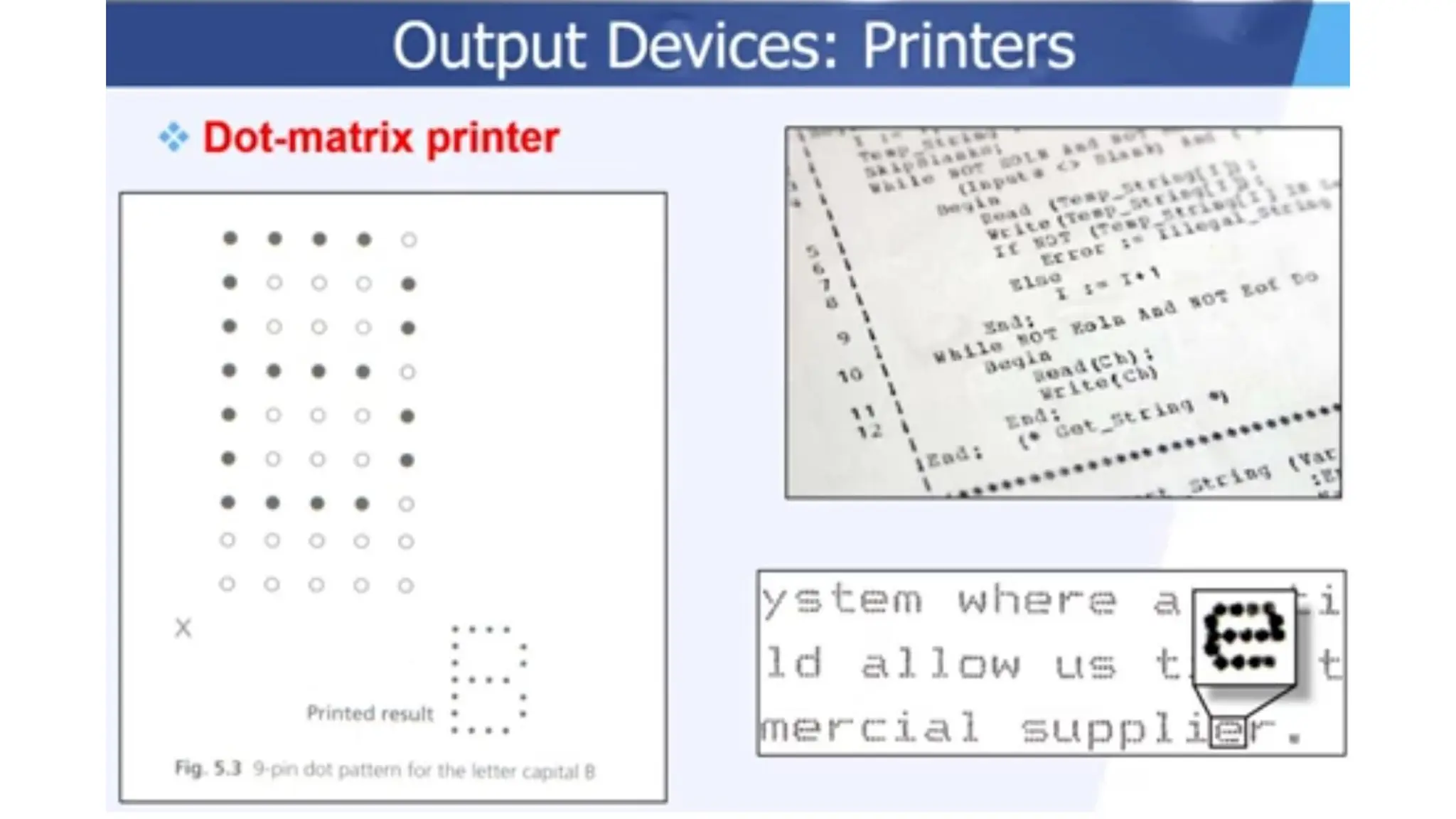 The document outlines the structure and content of the CS 101 course at the Modern Academy for Computer Science & Management Technology, focusing on input and output devices. It covers various input devices like keyboards, pointing devices, scanners, and digital cameras, along with their functionalities. Additionally, it discusses output devices, particularly printers, emphasizing the distinctions between different types and their operational characteristics.