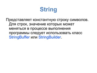 Документ представляет собой учебный материал по программированию на Java и Android, охватывающий создание и манипуляцию строками, работу с файлами и ввод/вывод. Он описывает методы классов String, StringBuffer и File, а также включает примеры кода для работы с файловыми потоками и форматированием данных. В конце документа указаны домашние задания, связанные с созданием бинарных файлов и поиском слов в текстовых файлах.
