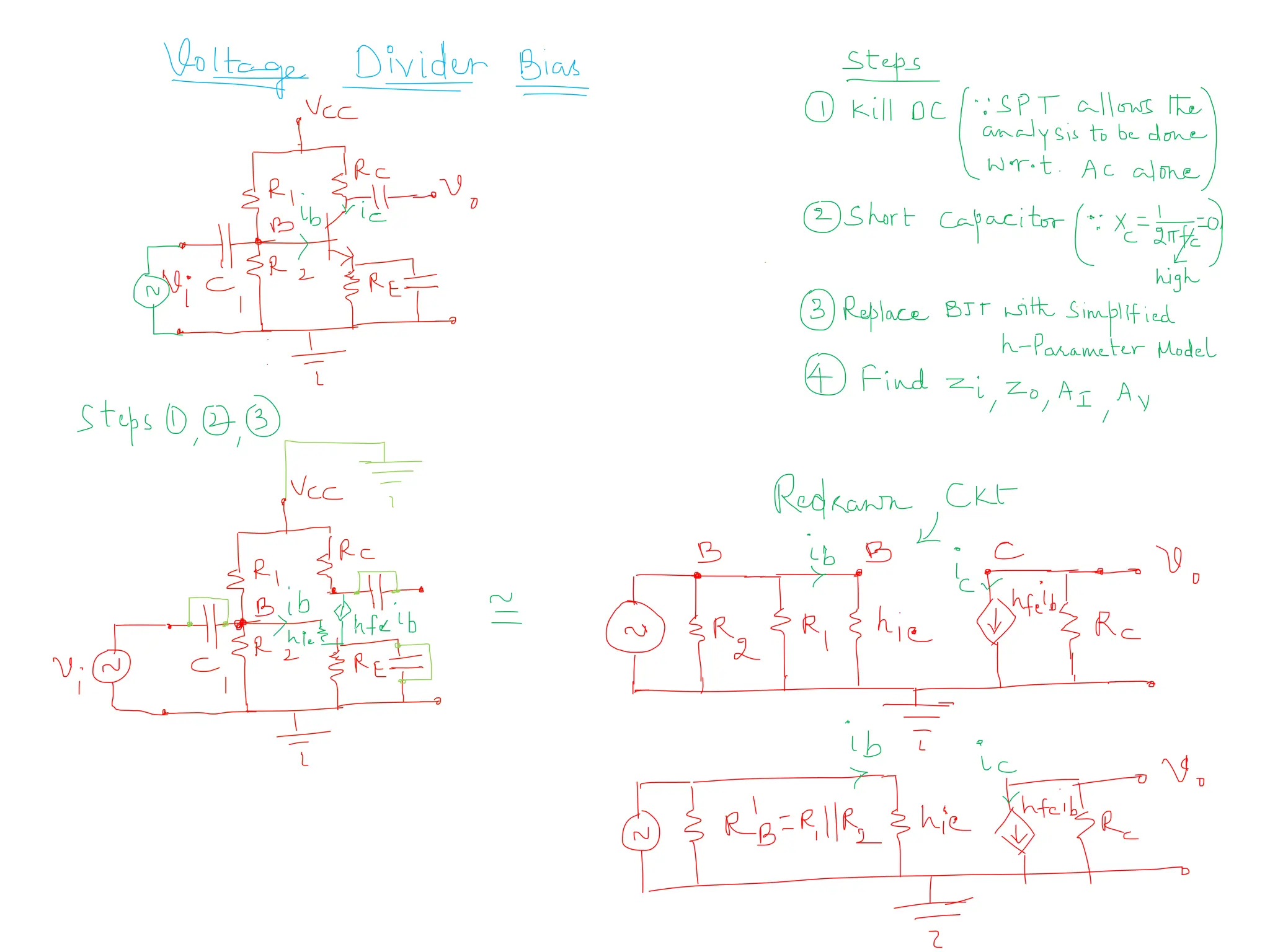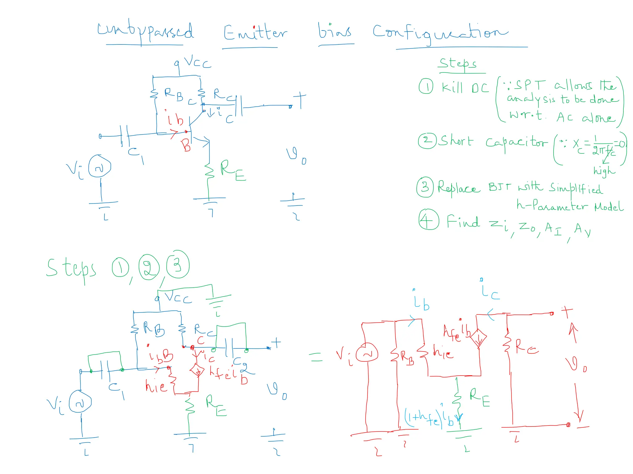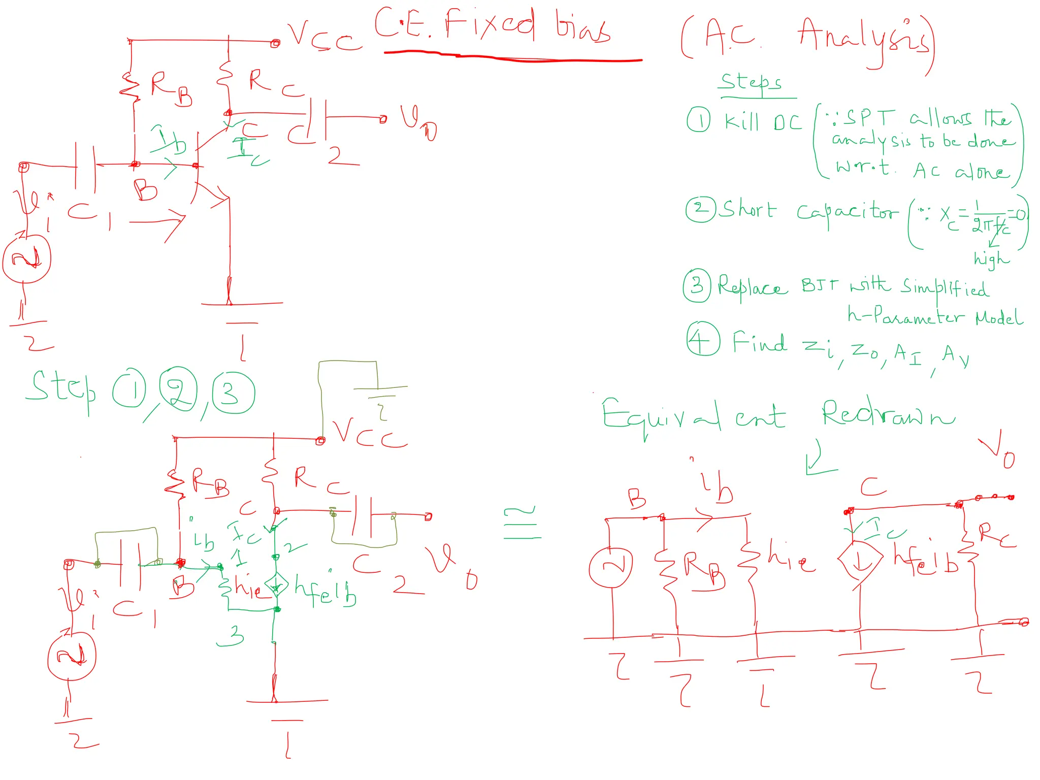 2) Coupling and Bypass capacitors are short ckt. The