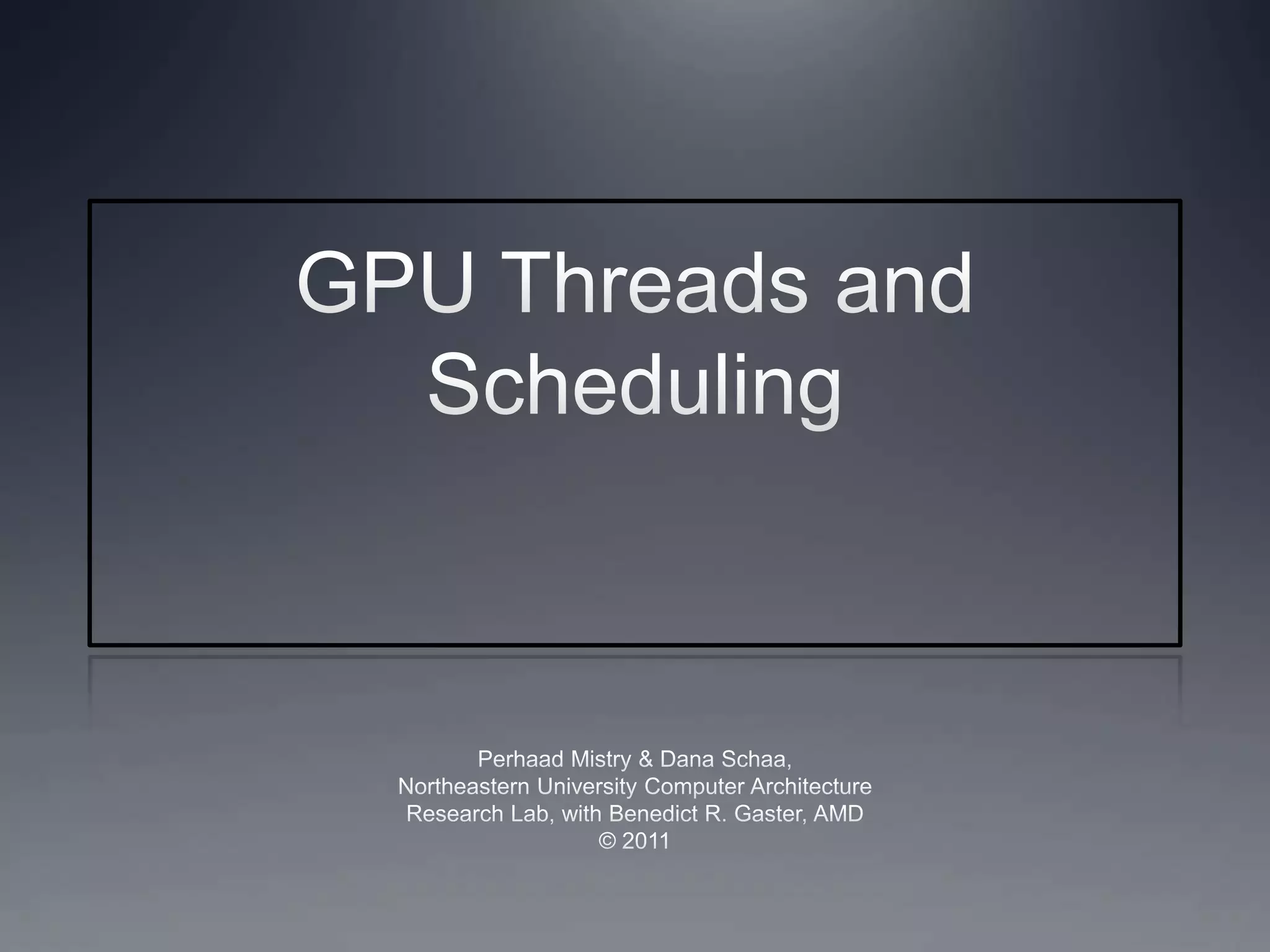 This document discusses how work groups are scheduled for execution on GPU compute units. It explains that work groups are broken down into hardware schedulable units known as warps or wavefronts. These group threads together and execute instructions in lockstep. The document covers thread scheduling, effects of divergent control flow, predication, warp voting, and optimization techniques like maximizing occupancy.