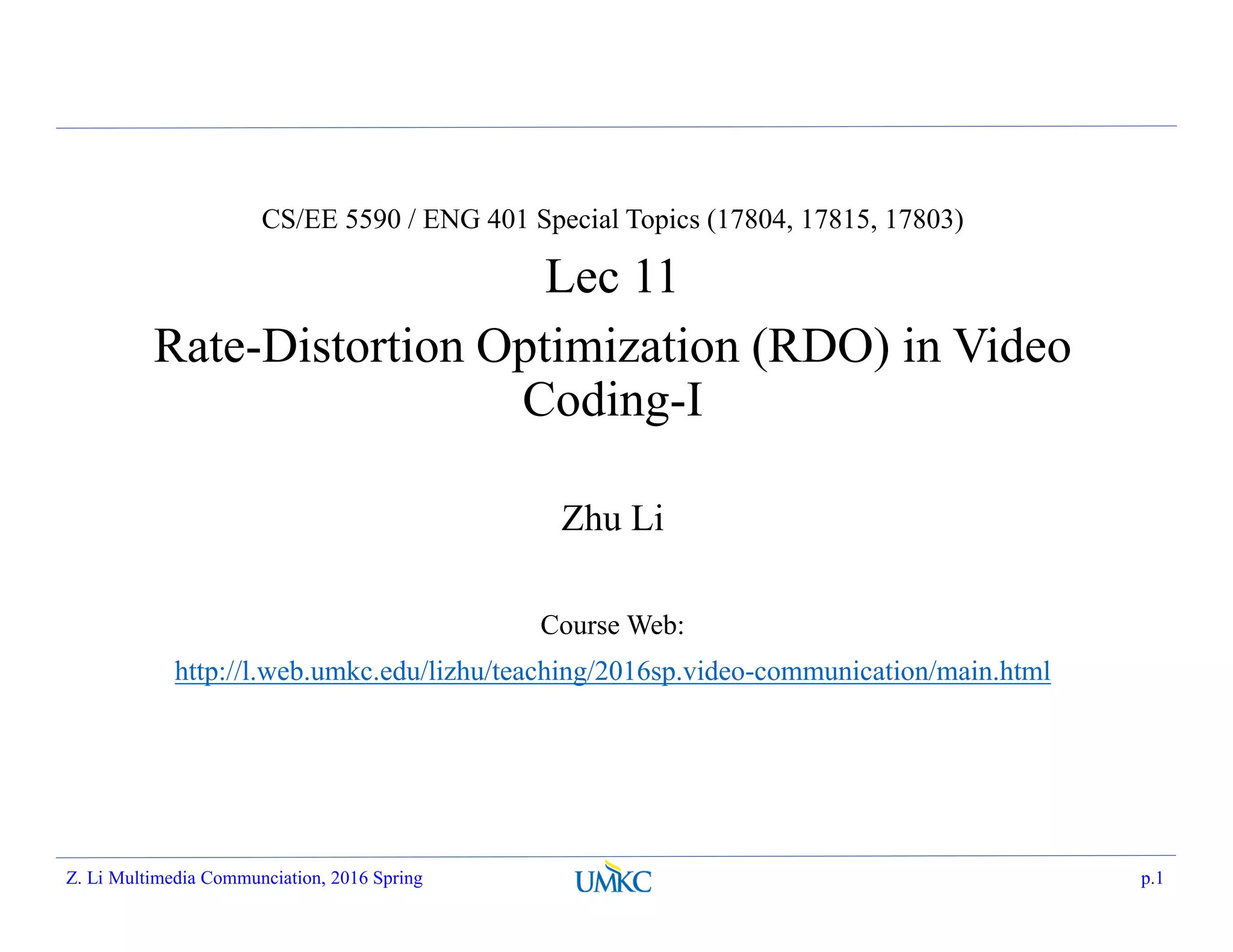 This document summarizes a lecture on rate-distortion optimization in video coding. It discusses various rate-distortion optimization problems including operational rate-distortion theory, joint source-channel coding optimization, storage constraint allocation, delay-constrained allocation, buffer-constrained allocation, and the multi-user problem. It also covers convex optimization techniques like the Lagrangian method that can help solve some of these optimization problems.
