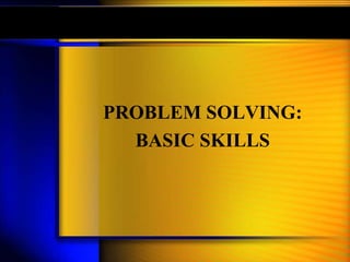This document discusses problem solving and the creative thinking process. It defines a problem as a question or situation that requires a solution. It outlines three types of problems: defining the real problem, types of problems based on severity and importance, and the four-step problem solving process of defining the problem, generating solutions, evaluating solutions, and implementing and following up on the selected solution.