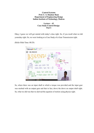 - The document summarizes the process of designing a controller for a gear transmission system to satisfy stability and performance requirements.