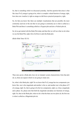 The document discusses Bode plots, which are used to visualize the frequency response of linear time-invariant systems. It begins by reviewing frequency response and how it characterizes the steady-state output of a system to a sinusoidal input.