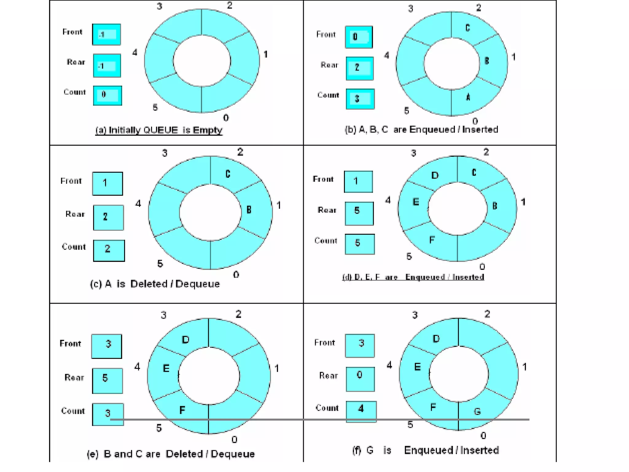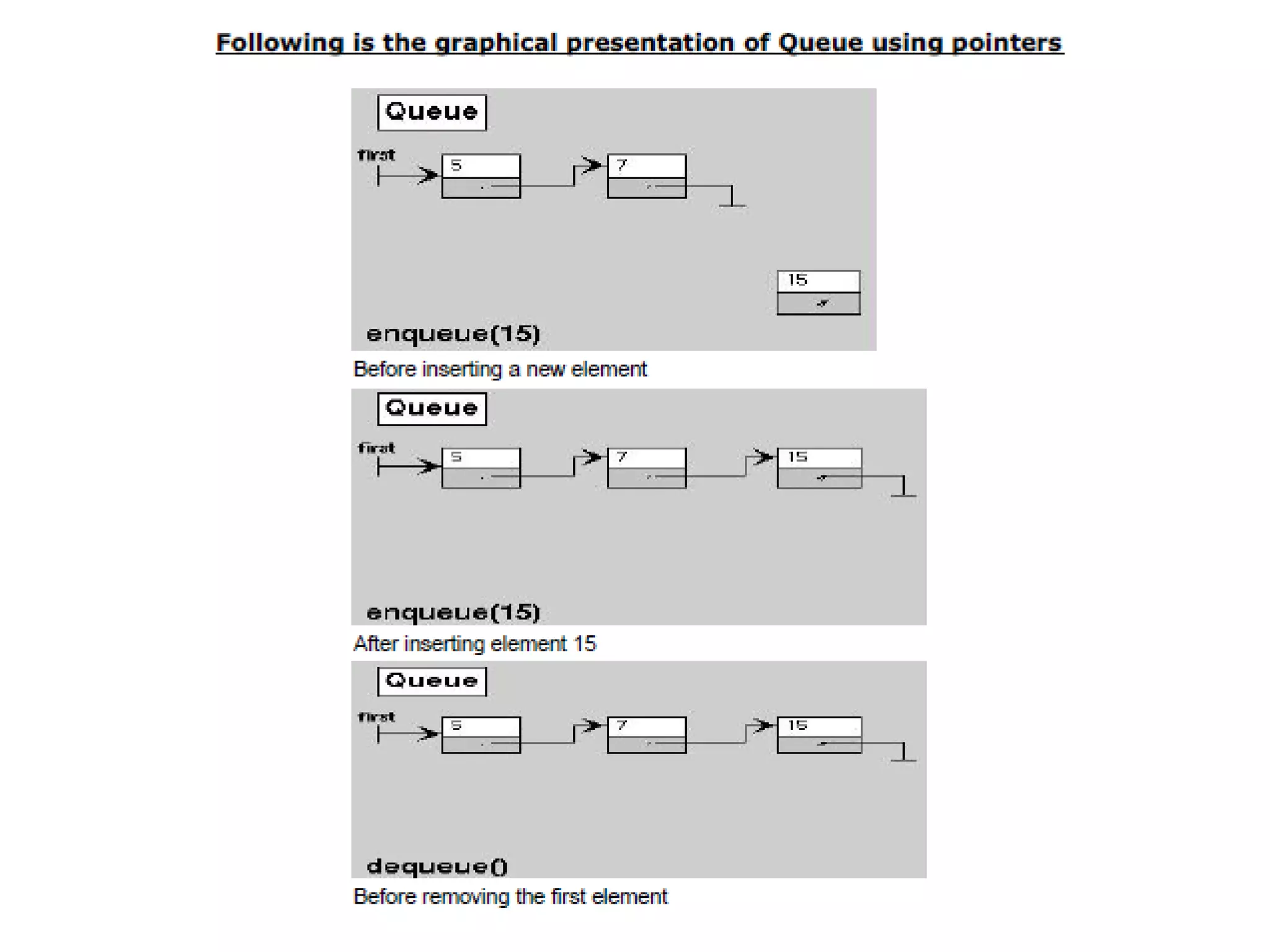 - Queues can be implemented using arrays or linked lists. Circular queues use arrays to avoid empty space issues.
