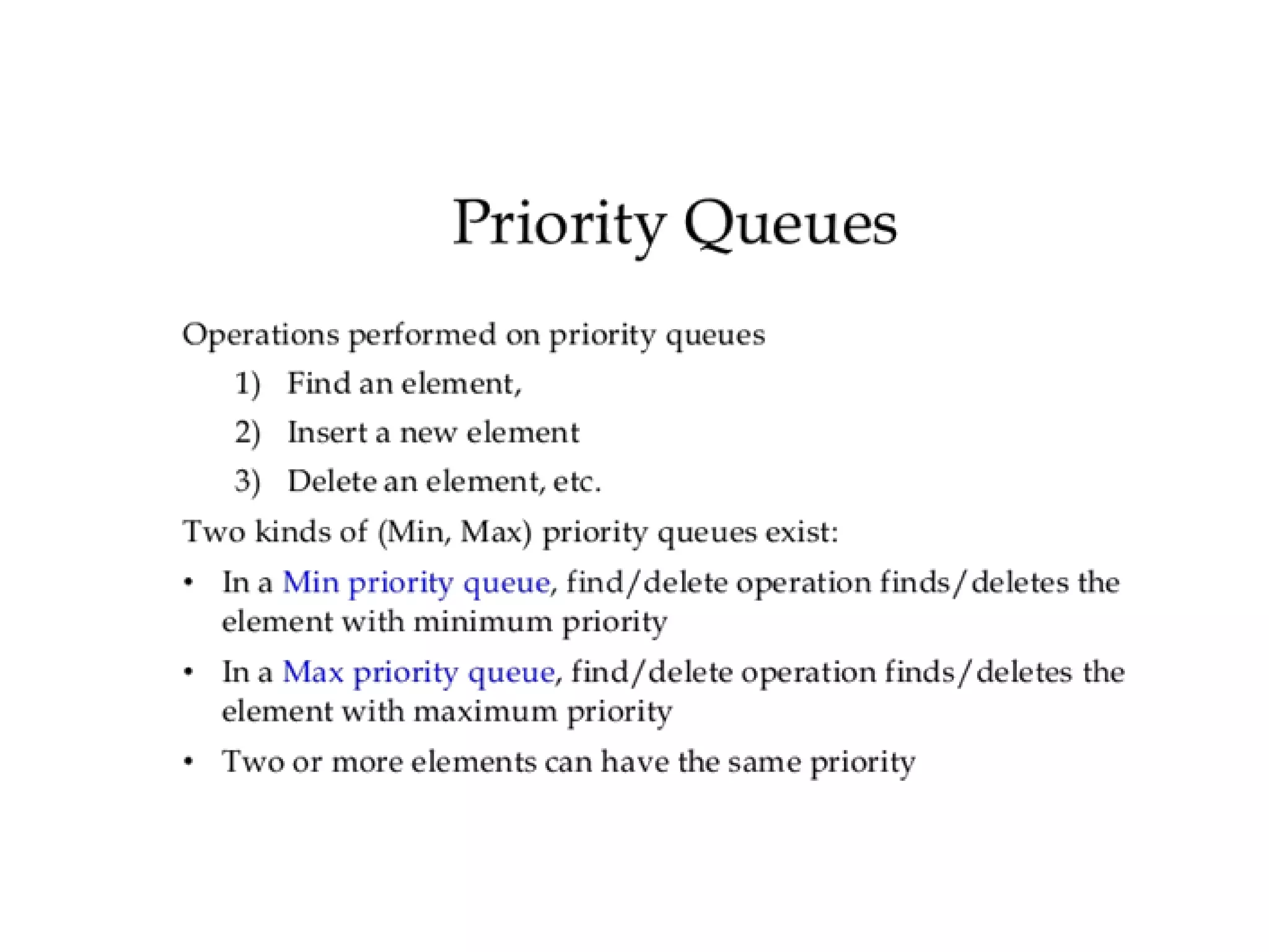 - Priority queues order elements by priority rather than insertion order, with the highest priority element removed first. They have applications like job scheduling.