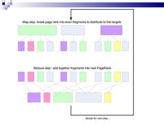 This document summarizes a lecture on graph algorithms and PageRank using MapReduce. It discusses graph representations like adjacency matrices and sparse matrices. It explains how breadth-first search and shortest path algorithms can be implemented in MapReduce through iterative passes. It then describes how PageRank can also be distributed by mapping graph nodes to PageRank value distributions, reducing the values, and iterating until convergence is reached.