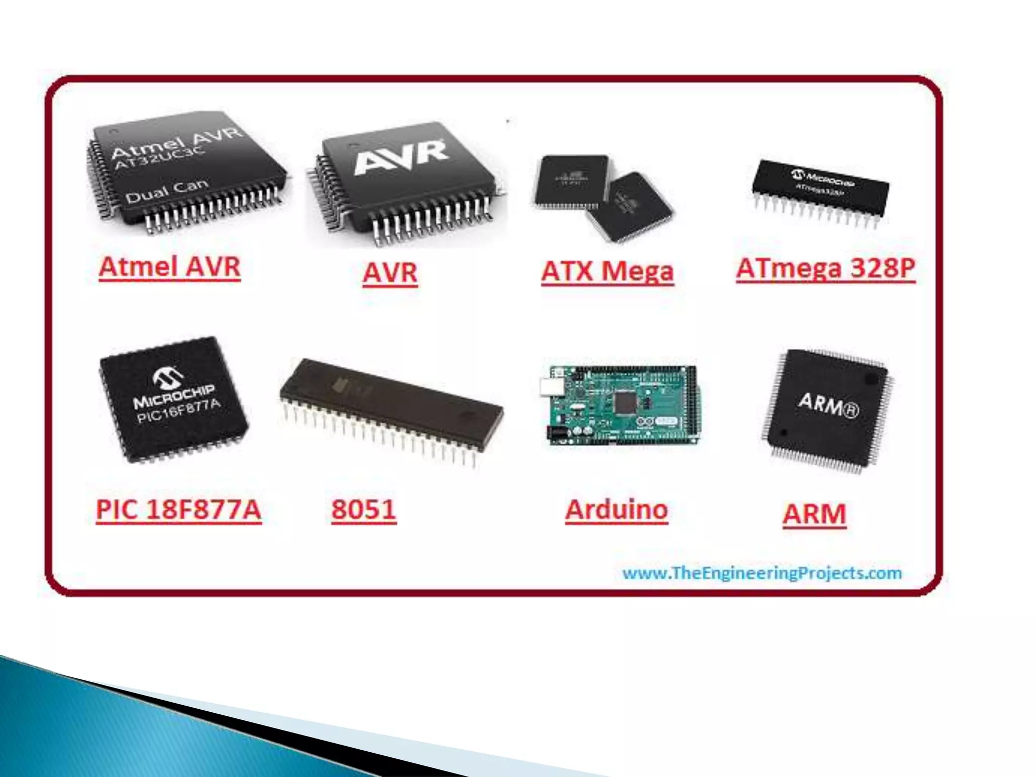 A microcontroller is an integrated circuit that can be programmed to perform tasks like controlling electronic devices. It contains a processor, memory, and input/output ports on a single chip. Microcontrollers come in different sizes based on the width of their internal data bus and instruction set, from 4-bit to 32-bit. They are widely used in embedded systems due to their low cost, low power usage, and flexibility from being programmable.