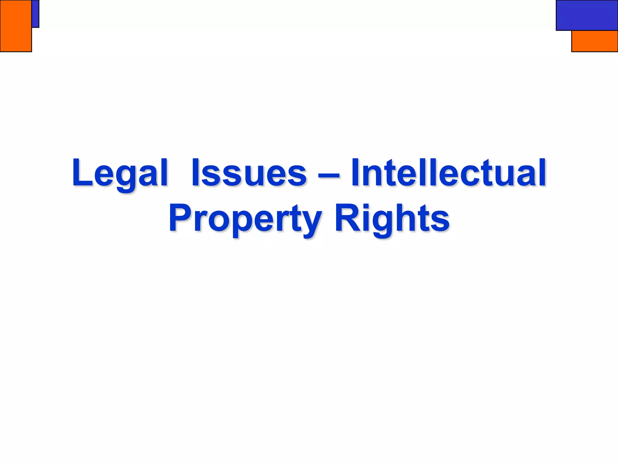 This lecture discusses several legal issues relating to intellectual property and software, including copyright issues, intellectual property rights, and acts protecting consumers. It covers topics such as software licenses, patents, trademarks, liability for faulty software, and computer misuse. Intellectual property for software can be protected through patents, copyrights, trademarks, and trade secrets. Copyright issues and consumer protection acts govern transactions of software.