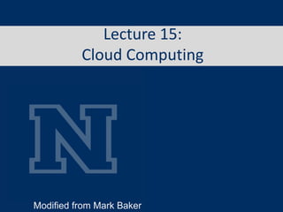 Cloud computing is a model for enabling ubiquitous, convenient, on-demand network access to a shared pool of configurable computing resources that can be rapidly provisioned and released with minimal management effort or service provider interaction. Key characteristics of cloud computing include on-demand self-service, broad network access, resource pooling, rapid elasticity, and measured service. Cloud computing provides opportunities for lower costs, improved performance and reliability, universal access, and collaboration. However, it also poses disadvantages such as reliance on a constant internet connection and potential security and performance issues.