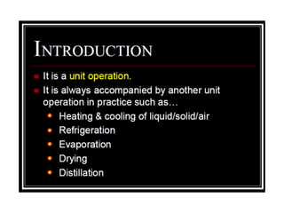 Heat always moves from warmer to cooler objects through three methods of heat transfer: conduction, convection, and radiation. Conduction involves the transfer of thermal energy through direct contact of particles. Convection involves the transfer of heat by the circulation of fluids like gases and liquids. Radiation involves the transfer of heat through electromagnetic waves and does not require a medium. Understanding these three methods of heat transfer is important in applications like manufacturing and building design.