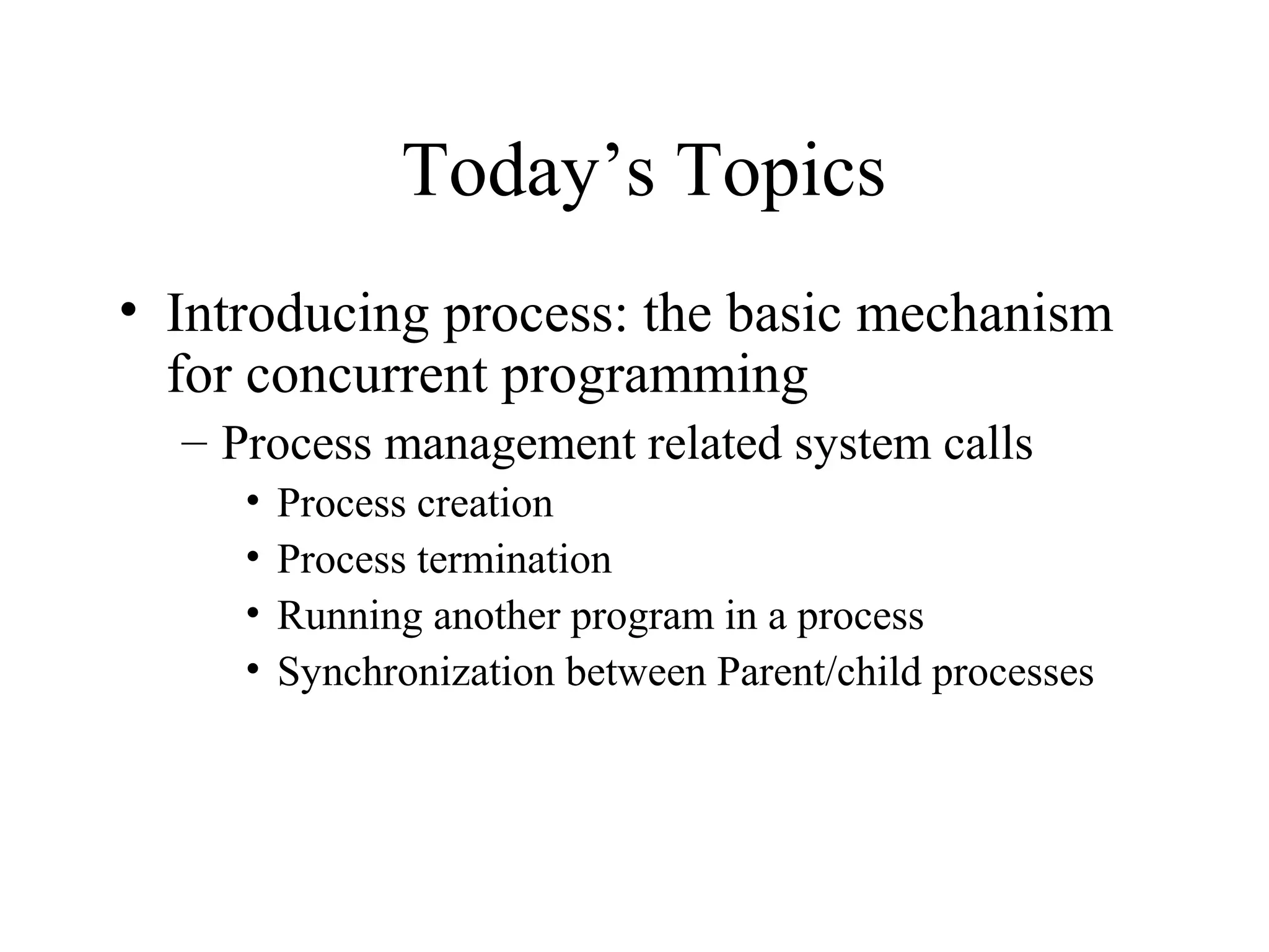 Processes allow for multitasking and isolation on a system. A process contains a program's execution context including memory, open files, and registers. The fork() system call creates a new child process that is a duplicate of the parent, while exec() replaces the current process with a new program. The parent can use wait/waitpid to synchronize with the child process and retrieve its exit status.