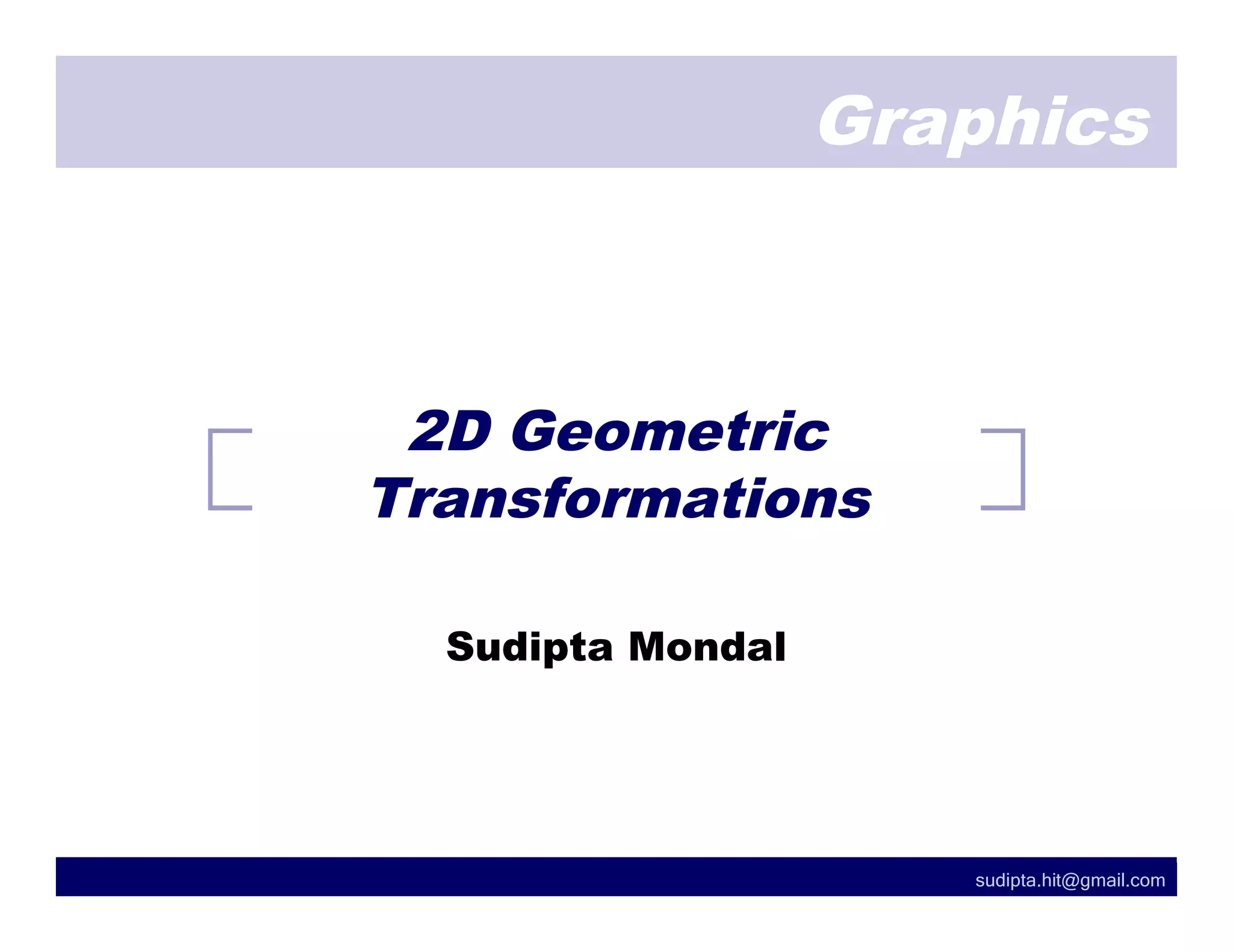 The document discusses 2D geometric transformations including translation, rotation, scaling, and shearing. It introduces representing transformations using 2x2 matrices and homogeneous coordinates using 3x3 matrices. Transformations can be combined by matrix multiplication, allowing multiple transformations to be applied sequentially in an efficient manner.