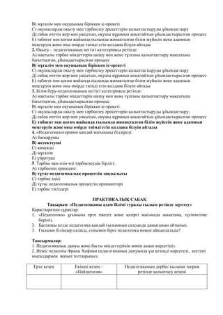оны барлық жағынан бiлуi керек. Бұл бiлiмдер педагогиканың әдiснамасын жасау, кешендi