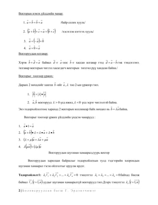 Тодорхойлолт1: 2 векторын скаляр үржвэр нь тоо байна. a b буюу a b гэж тэмдэглэнэ.