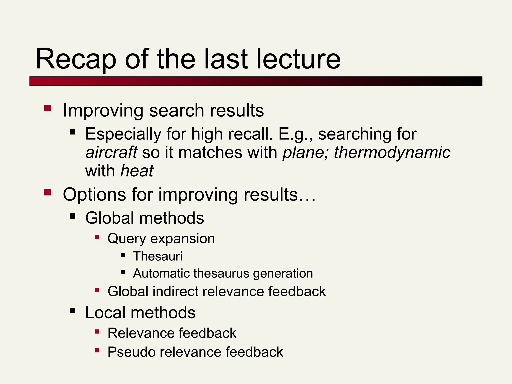 #2 The examples in the first bullet refer to the Cranfield data set which we have used as a programming exercise.
