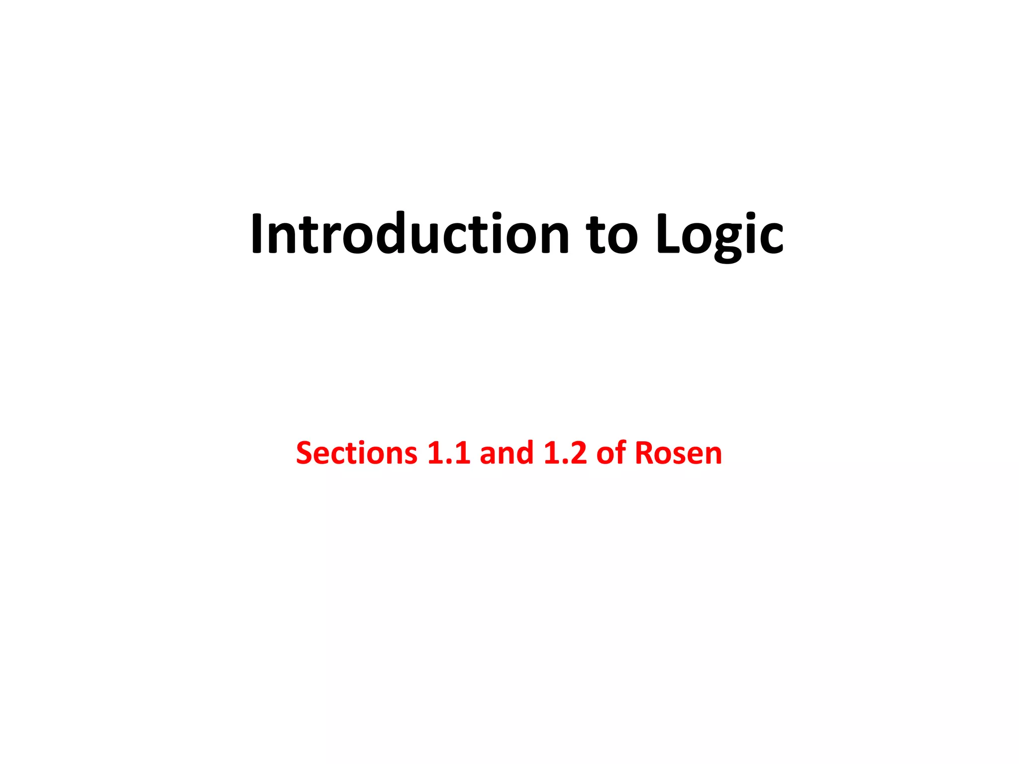 This document provides an introduction to propositional logic and logical connectives. Some key points: