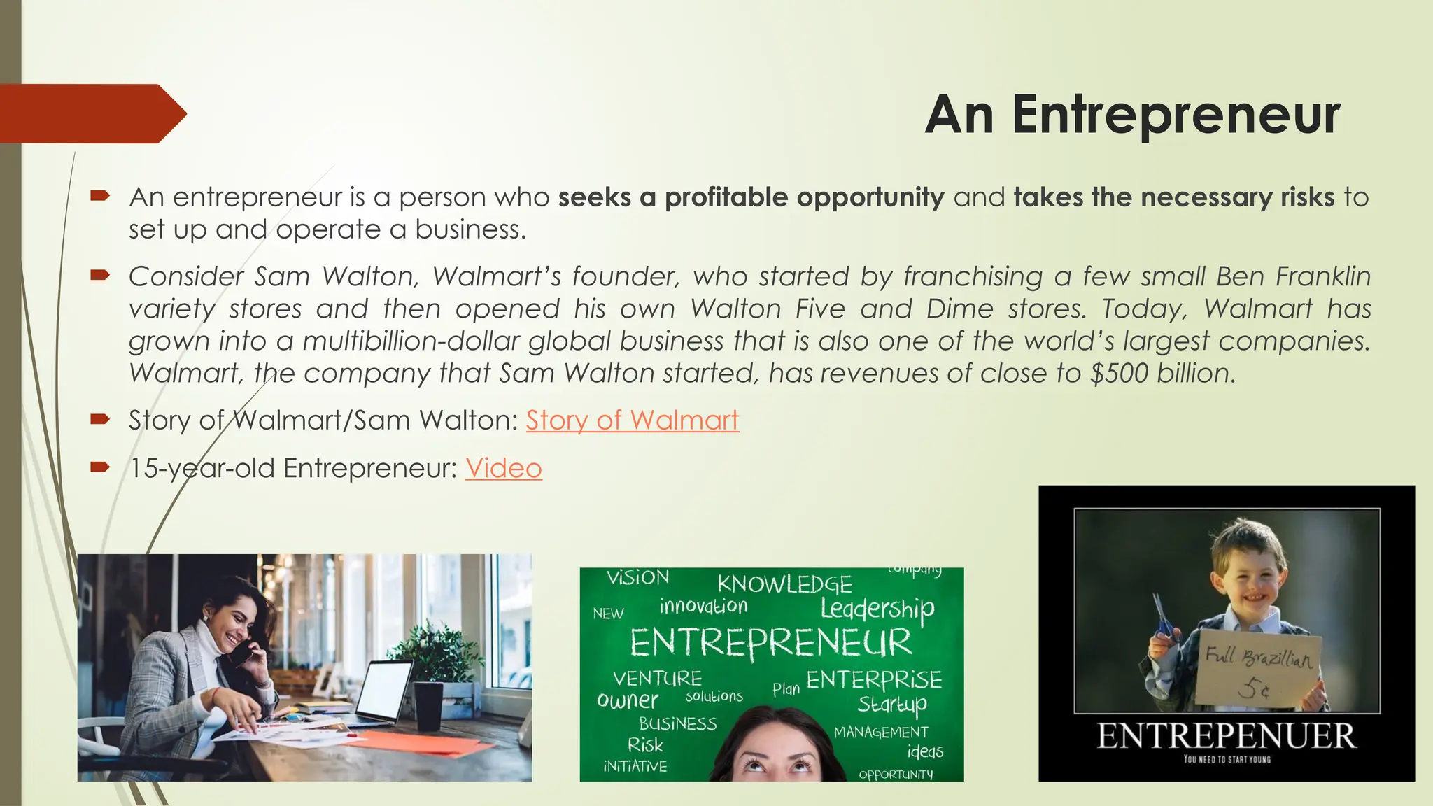 Anentrepreneur is a person who seeks a profitable opportunity and takes the necessary risks to
