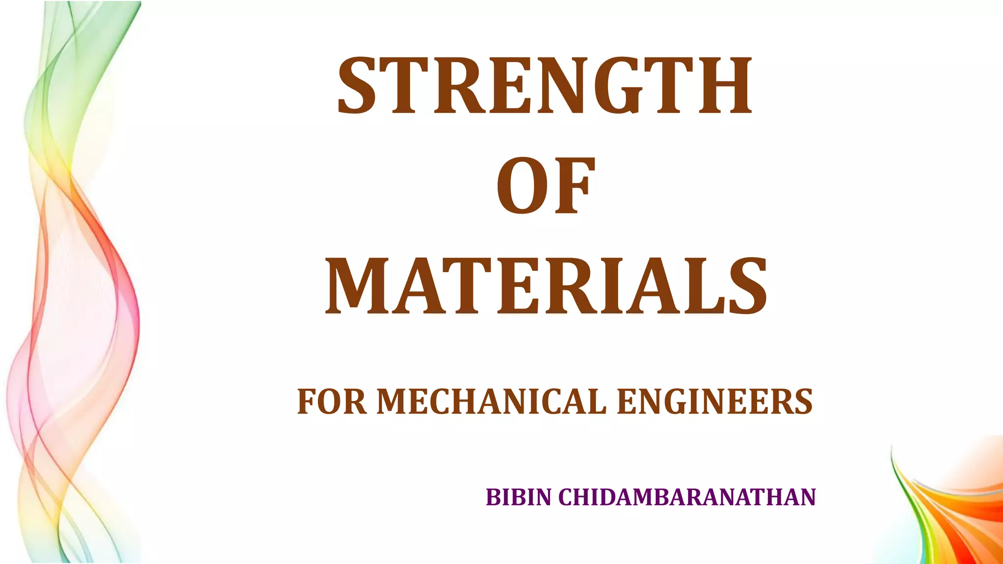 This document provides an overview of key concepts in strength of materials including: