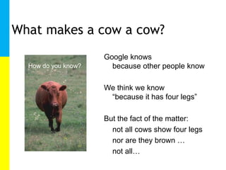The document discusses computer vision techniques for object detection and localization. It describes methods like selective search that group image regions hierarchically to propose object locations. Large datasets like ImageNet and LabelMe that provide training examples are also discussed. Performance on object detection benchmarks like PASCAL VOC is shown to improve significantly over time. Evaluation standards for concept detection like those used in TRECVID are presented. The document concludes that results are impressively improving each year but that the number of detectable concepts remains limited. It also discusses making feature extraction more efficient using techniques like SURF that take advantage of integral images.