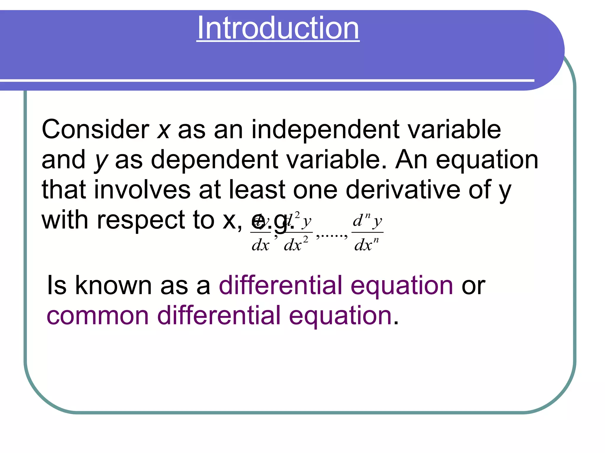 This document discusses differential equations and their solutions. It defines differential equations as equations involving derivatives. It notes that solutions can be general, containing an arbitrary constant, or particular, containing an initial value. Examples are given of separating variables and integrating to find the general solution to first order differential equations.