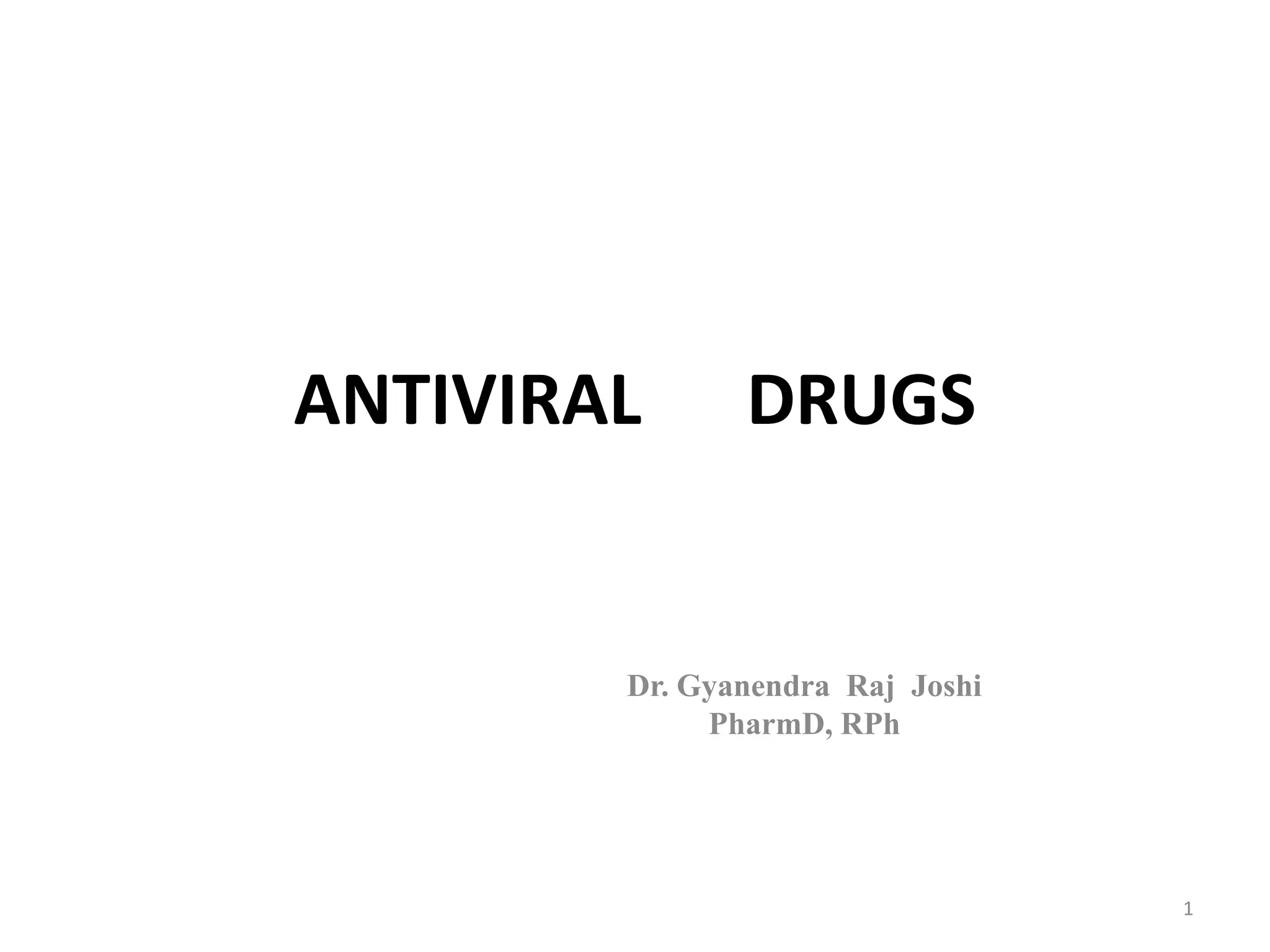 This document provides information on antiviral drugs, including their mechanisms of action and examples of major drugs used to treat different viral infections. It discusses how antiviral drugs work by blocking viral penetration, inhibiting viral DNA or RNA polymerase, or inhibiting reverse transcriptase. Major antiviral drugs mentioned include acyclovir, ganciclovir, foscarnet for herpes viruses, amantadine and rimantadine for influenza, entecavir and adefovir for hepatitis B, and various nucleoside and nucleotide reverse transcriptase inhibitors as well as protease inhibitors for HIV. The document also reviews the adverse effects and guidelines for use of these various antiviral agents.