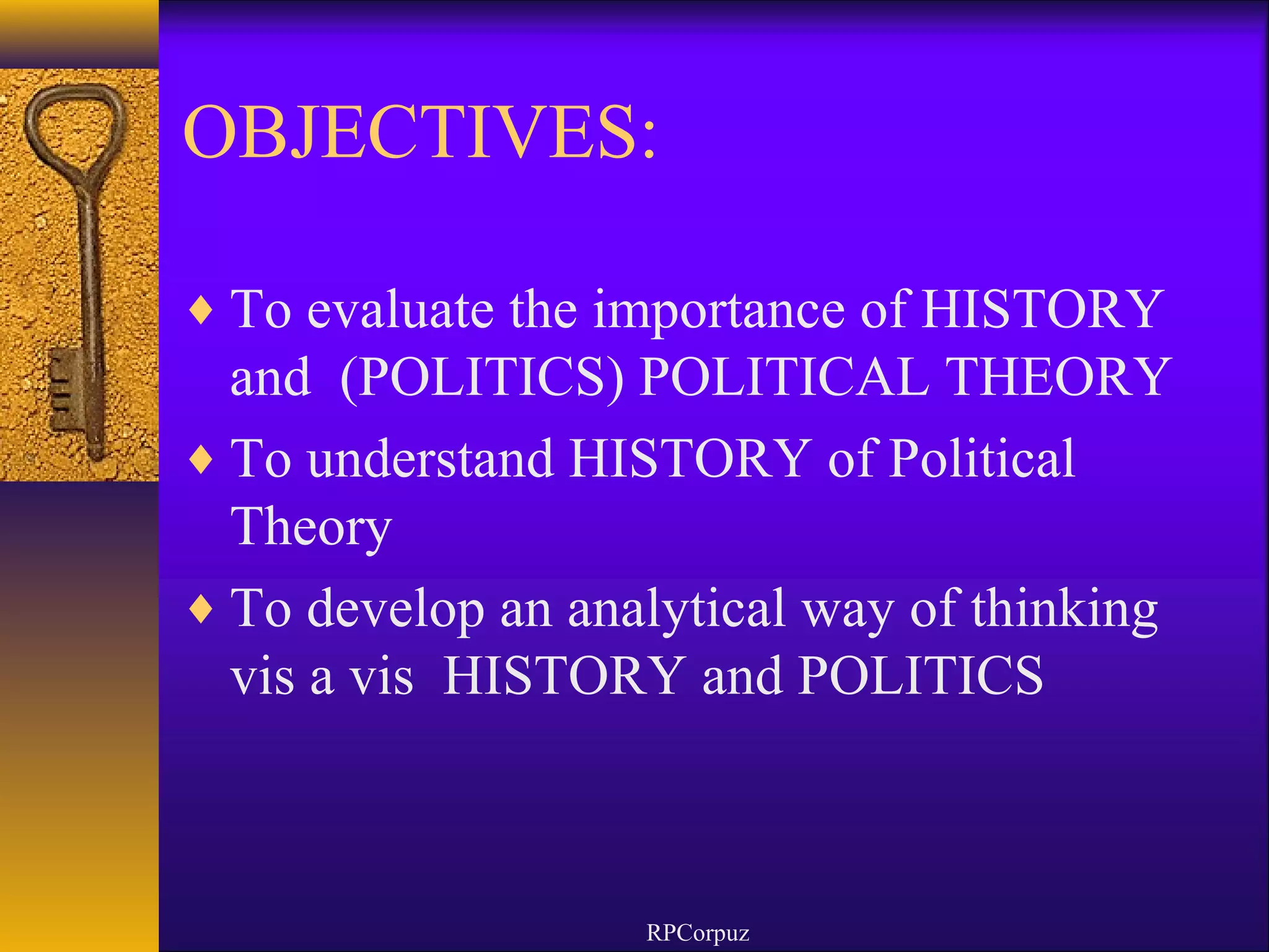 This document provides an overview of the objectives and key concepts regarding the history of political thought. It discusses how history comes from the Greek word for inquiry and investigation and aims to understand the past of mankind. The document also examines the nature of history, noting that it has no subject matter of its own and synthesizes knowledge from many fields to illuminate pieces of the past. Finally, it explores some definitions and elements of politics and the state, such as how the state is a human community that claims a monopoly on the legitimate use of force.