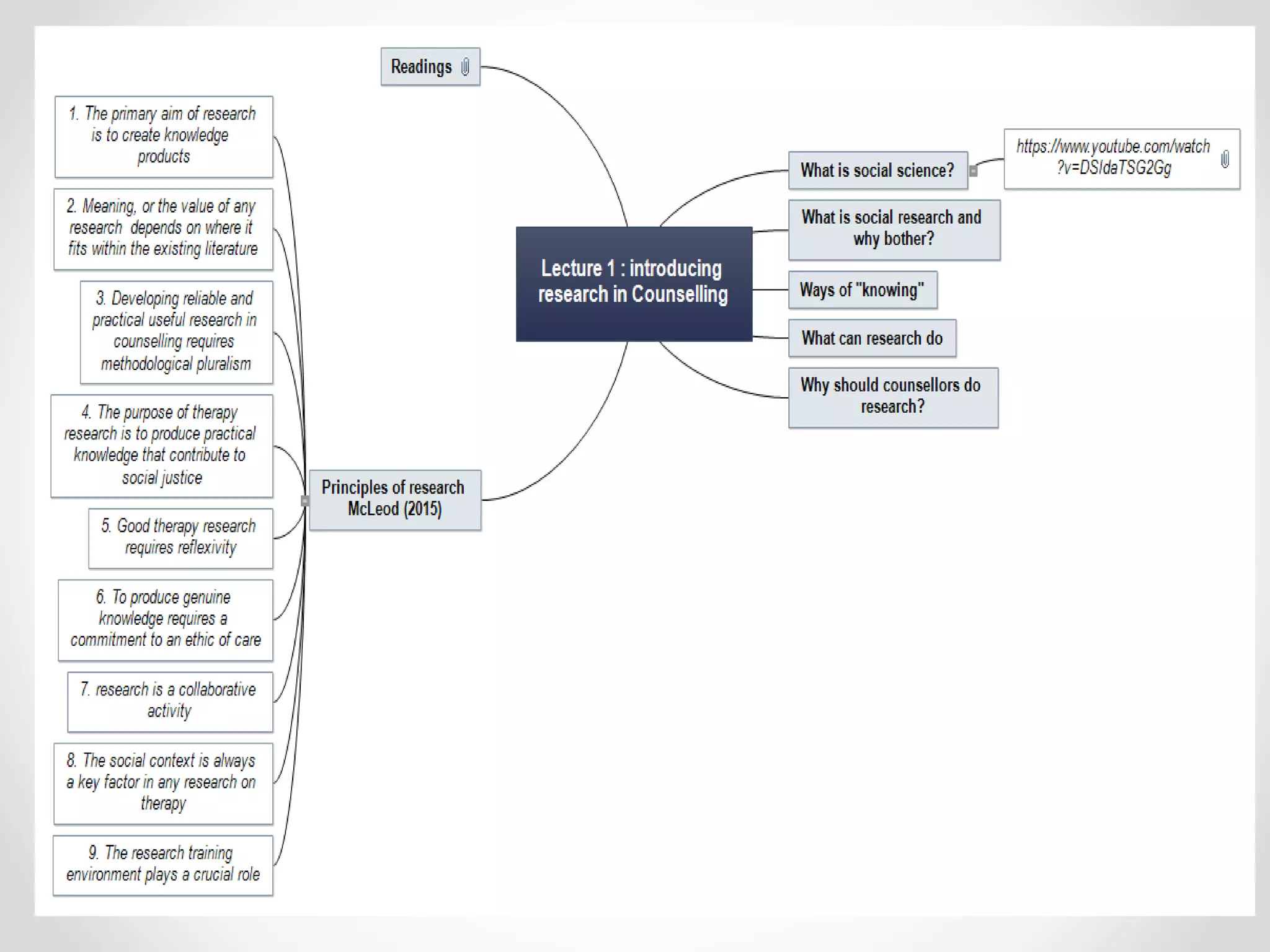The document introduces research in counseling, emphasizing the importance of understanding the scientific method, different ways of knowing, and the significance of research for counselors. It contrasts positivism and constructivism as approaches to research, highlighting their implications for knowledge acquisition and practice. Additionally, it outlines nine principles of research, stressing the necessity for methodological pluralism and the importance of research in improving client outcomes.