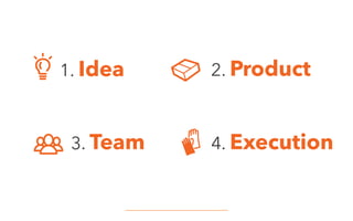 The document discusses the key steps to starting a successful startup: 1) Having a strong idea that addresses an important problem or need; 2) Building a product that users love by talking to users, getting feedback, and focusing on growth metrics; 3) Assembling a strong founding team; and 4) Executing effectively through constant iteration and a focus on the product and customer experience. The ideal startup has an important mission that motivates the team to create a fanatically great product for users.
