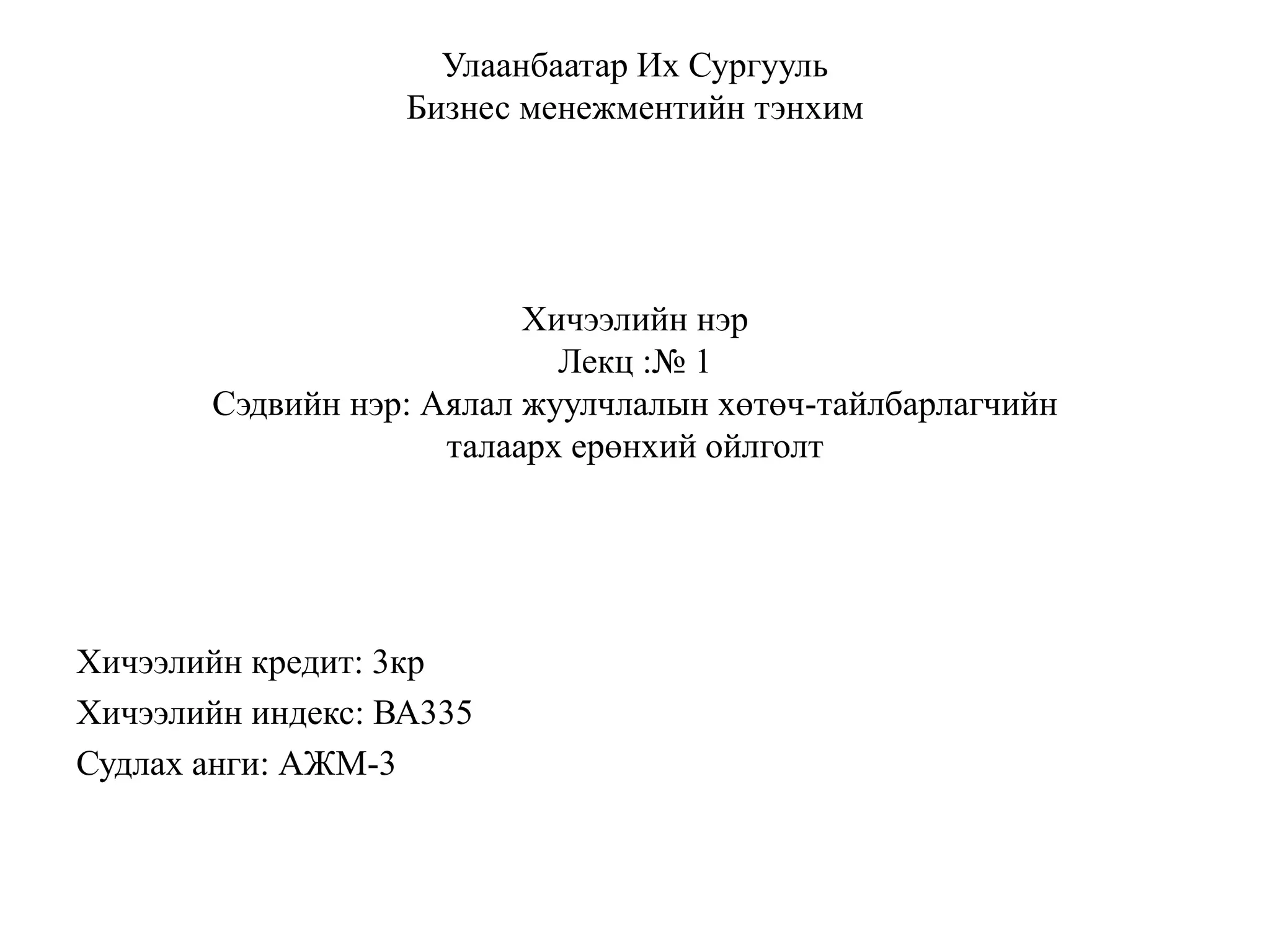 Хичээлийн индекс: ВА335