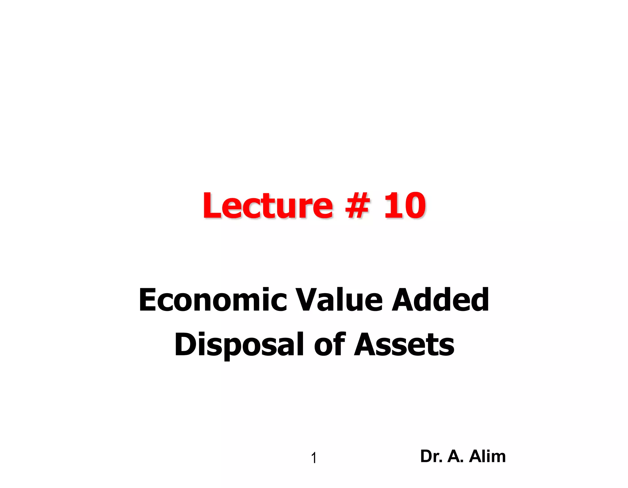 1) The document discusses economic value added (EVA) and how it is calculated as net profit after tax minus the cost of invested capital.