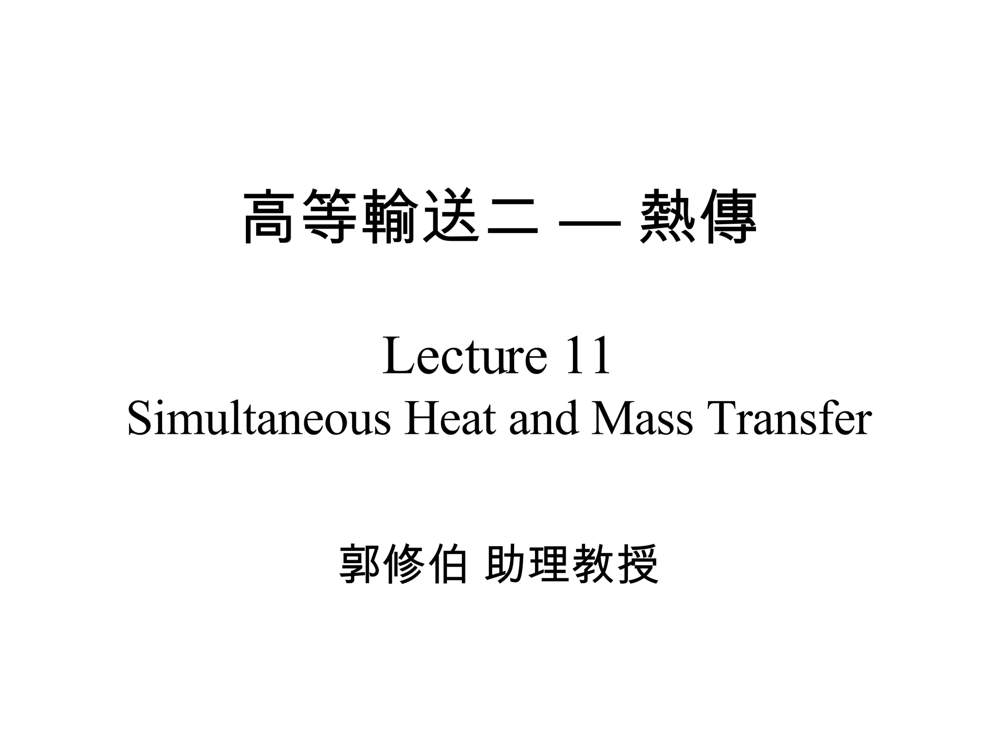This document discusses simultaneous heat and mass transfer processes. It notes that heat conduction, mass diffusion, and fluid flow obey similar governing equations. While heat and mass transfer are mathematically analogous for gases, they are not as closely coupled for liquids due to lower mass diffusivity. The Chilton-Colburn analogy was developed based on experimental data to relate heat and mass transfer coefficients for liquids, with an exponent of 2/3. Cooling tower design examples demonstrate how heat and mass transfers are coupled in such systems.