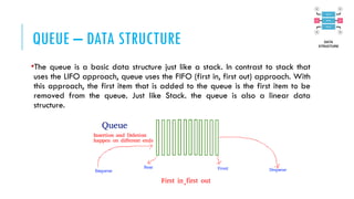 •The queue is a basic data structure just like a stack. In contrast to stack that