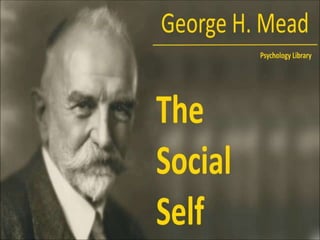 3. George Mead distinguished between the "I", one's spontaneous self, and the "Me", one's conforming self reflecting social expectations. He described how people learn to take the roles of others through play and social experience.