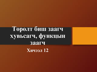 • Òºðºë íü òîäîðõîéëîãäîîã¿é çààã÷èéã òºðºëò áèø çààã÷