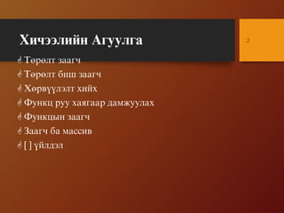 • Ýíý á¿õíýýñ ä¿ãíýæ¿çâýë ìàññèâûí íýð áîë çààã÷ õóâüñàã÷áîëæ áàéíà.
