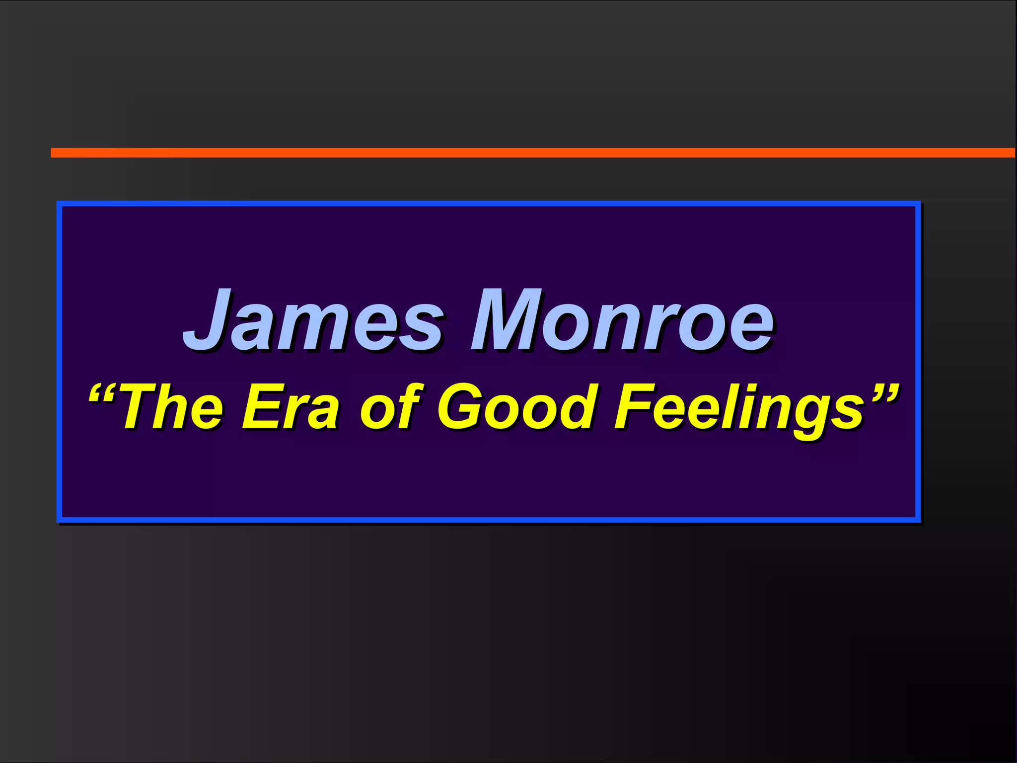 The document discusses the political divisions that emerged in the U.S. during the presidency of James Monroe, known as the Era of Good Feelings. Sectional differences arose over issues like tariffs and the role of the federal government. The nation was dividing into three sections - the Northeast, South, and West - each promoting their own economic self-interest. The Missouri Compromise of 1820 maintained the balance of power between slave and free states as the nation expanded.
