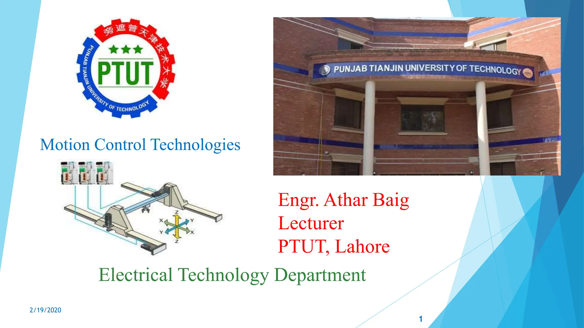 This document provides an overview of motion control technologies and concepts. It discusses common industrial motion applications like indexing, flying shears, and pick and place machines. It also covers motion system layouts, relationships of motion using equations, specifying feedback devices for motors, and examples of single and 1.5 axis interpolation motion profiles. Feedback device characteristics like accuracy, resolution, pulses/revolutions are explained.