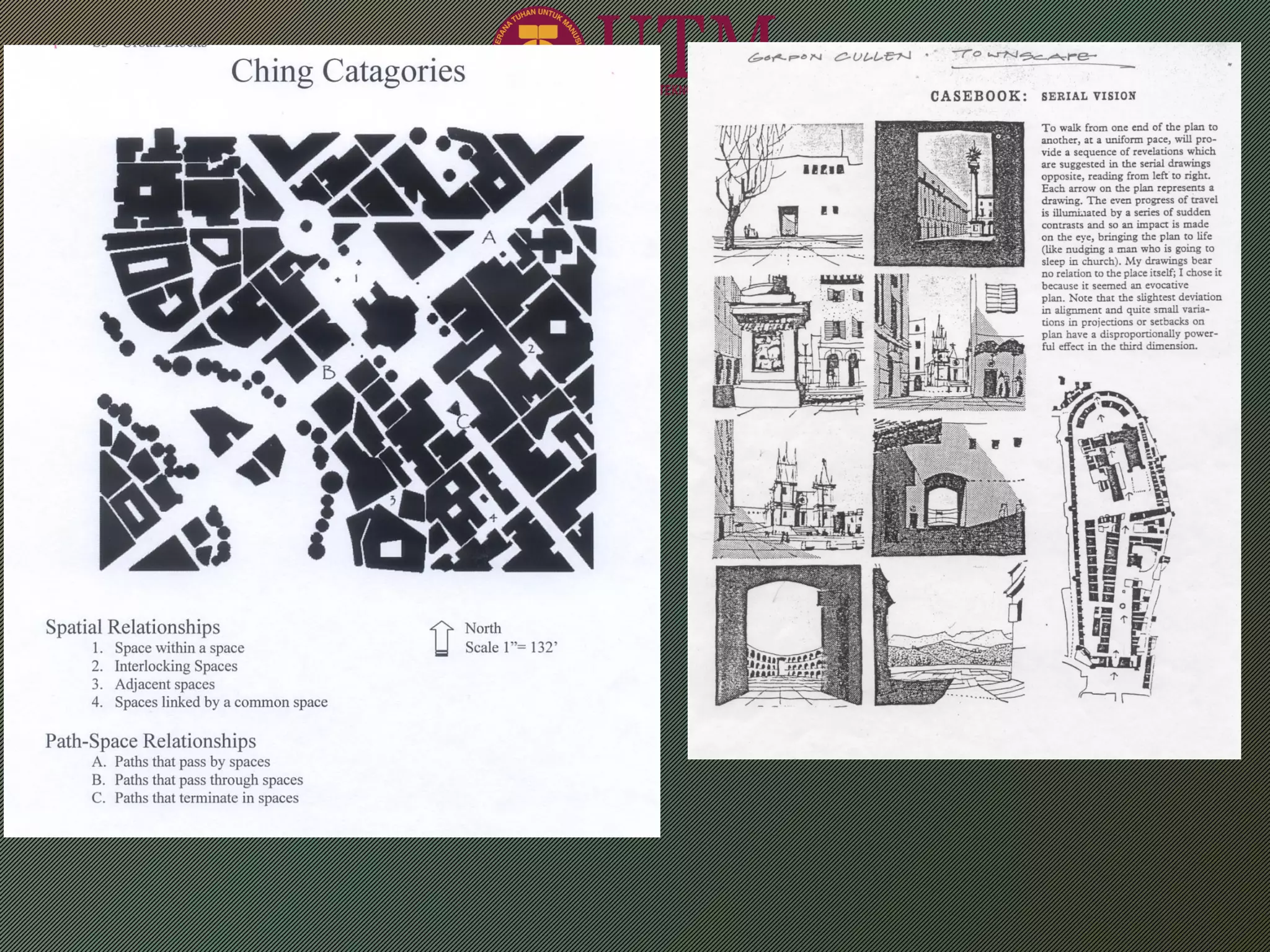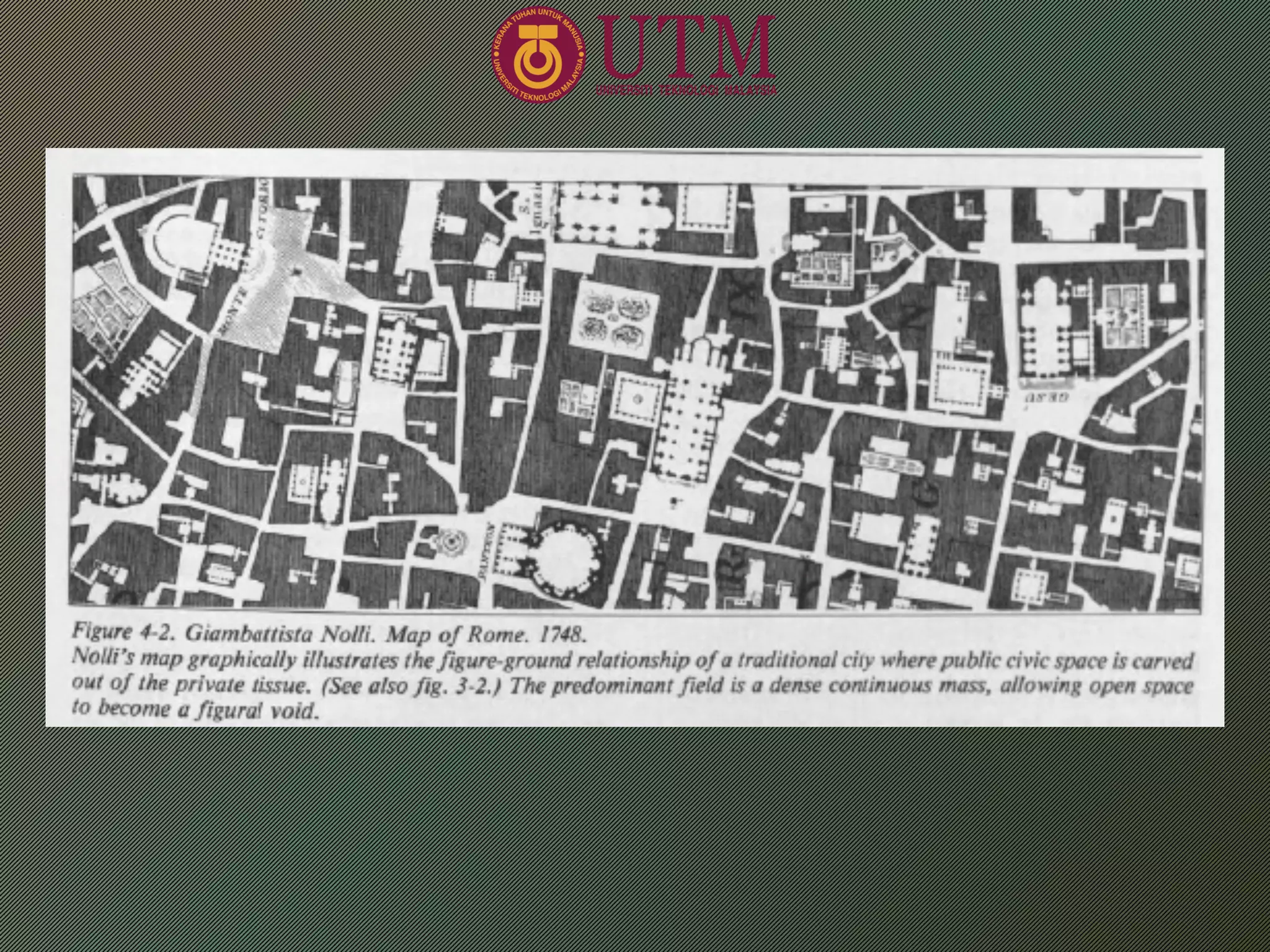 1. Figure and ground theory examines the relationship between solid urban masses (buildings) and open voids (spaces). It aims to establish a hierarchy of enclosed spaces through manipulating the pattern of solids and voids.