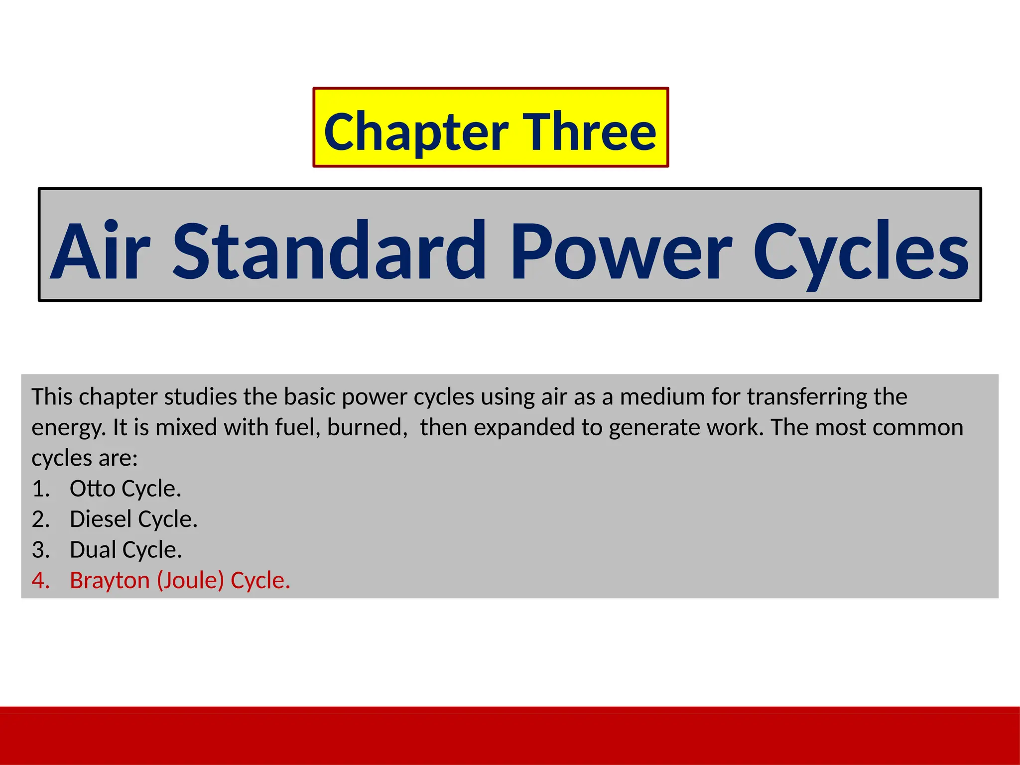 This chapter studies the basic power cycles using air as a medium for transferring the